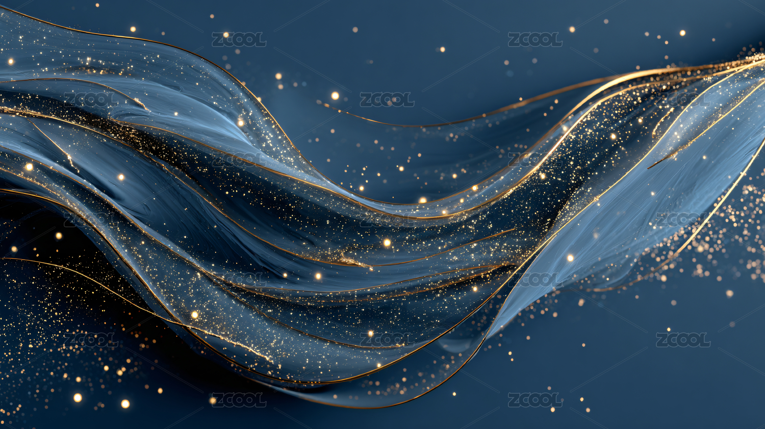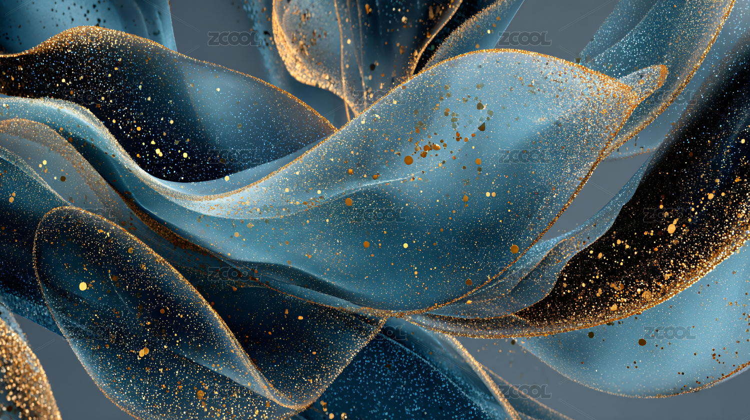 蓝色金色水墨抽象背景
