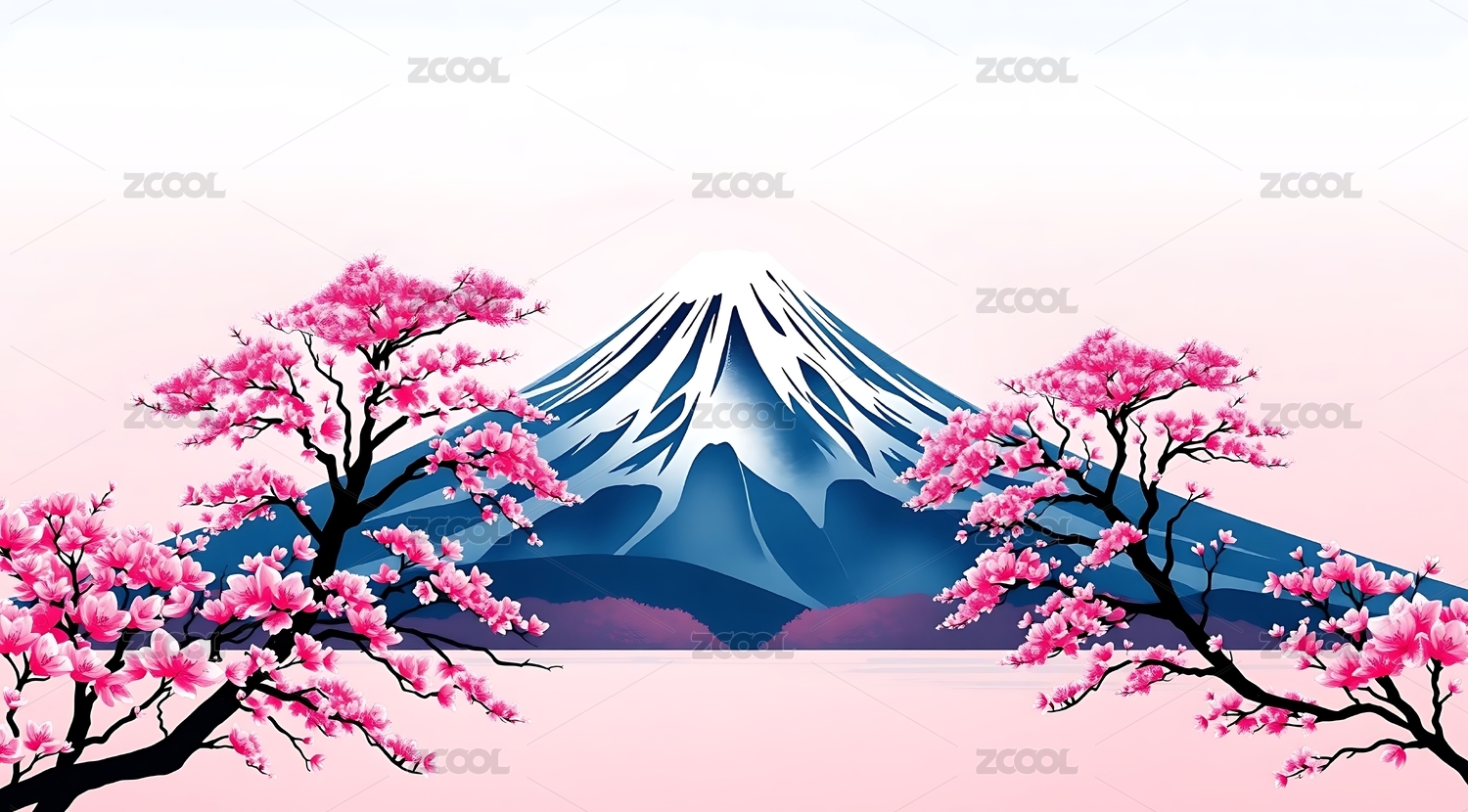 富士山,樱花树,粉色花瓣,蓝天,白雪覆盖的山峰