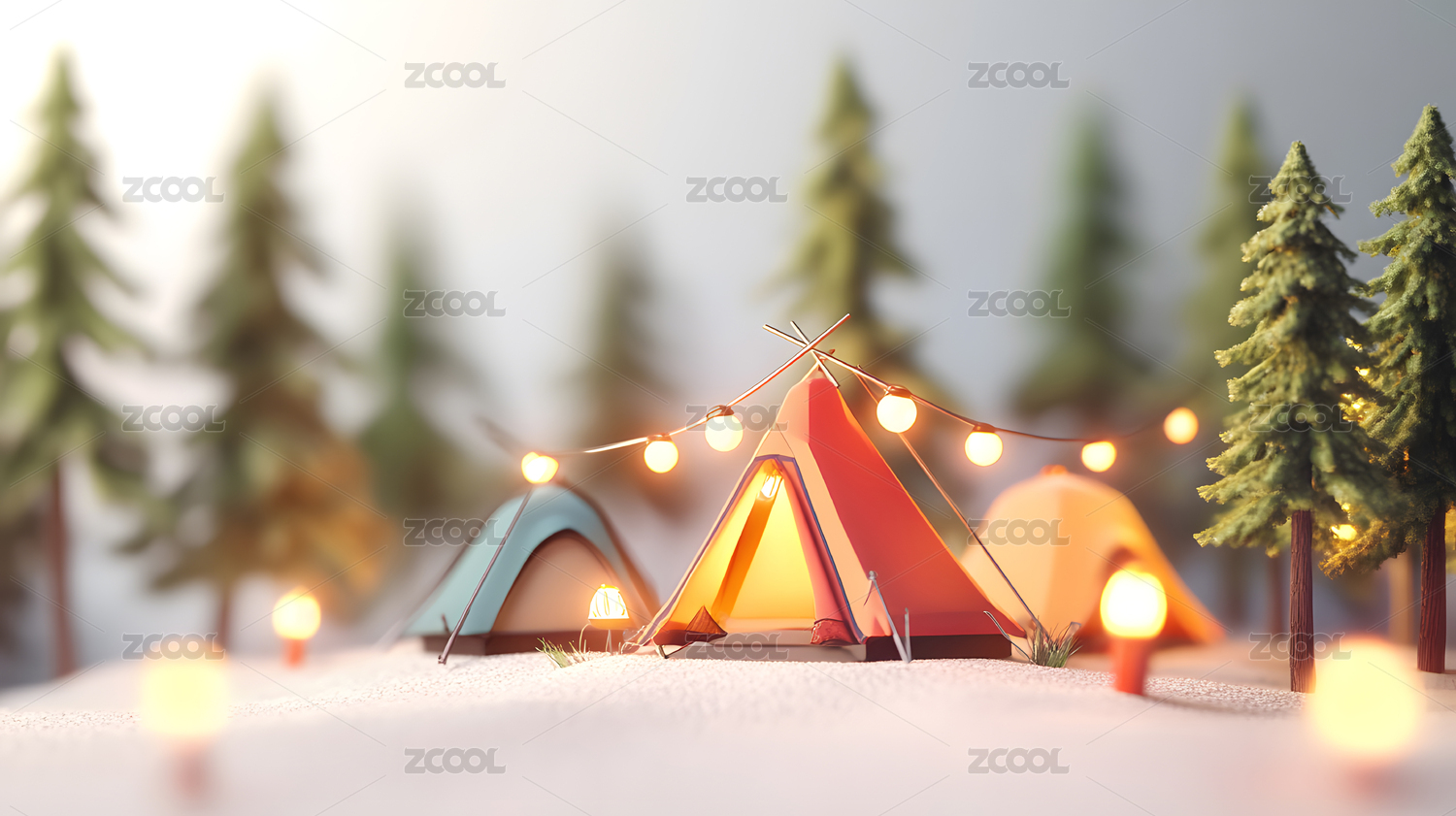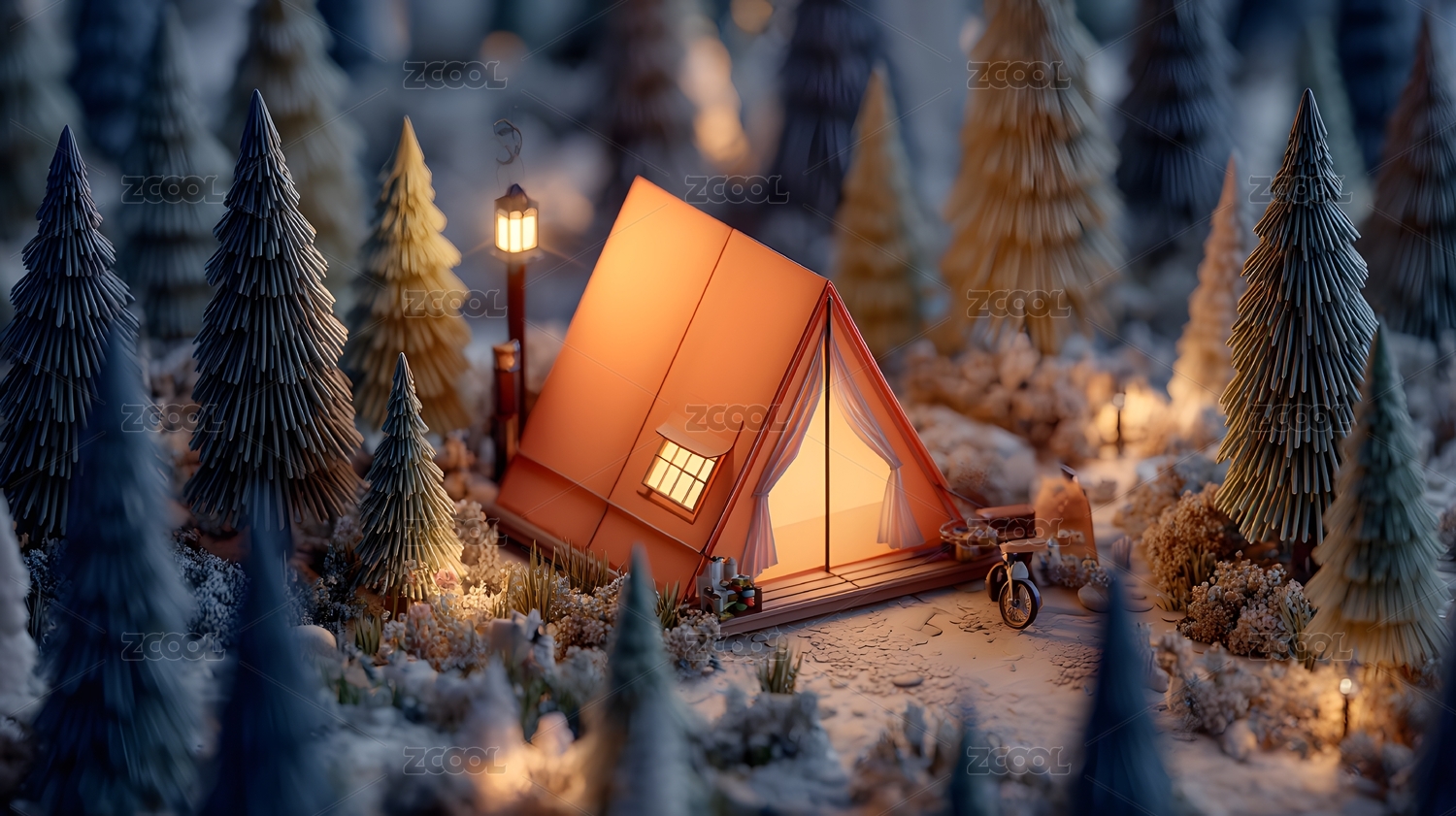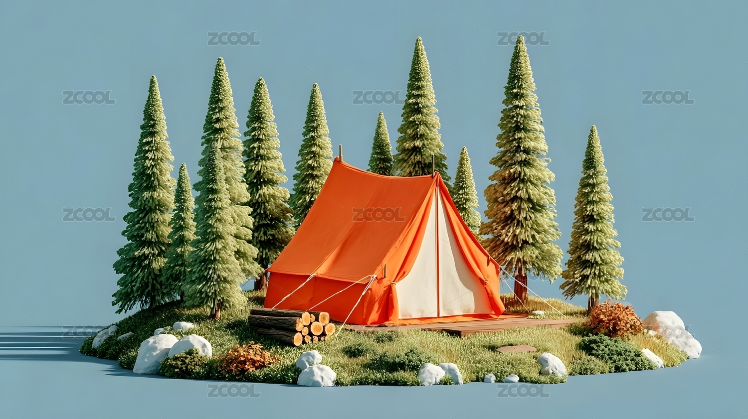 露营,帐篷,森林,松树,户外,极简,模型,场景,度假,旅行