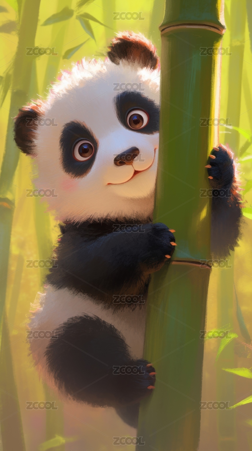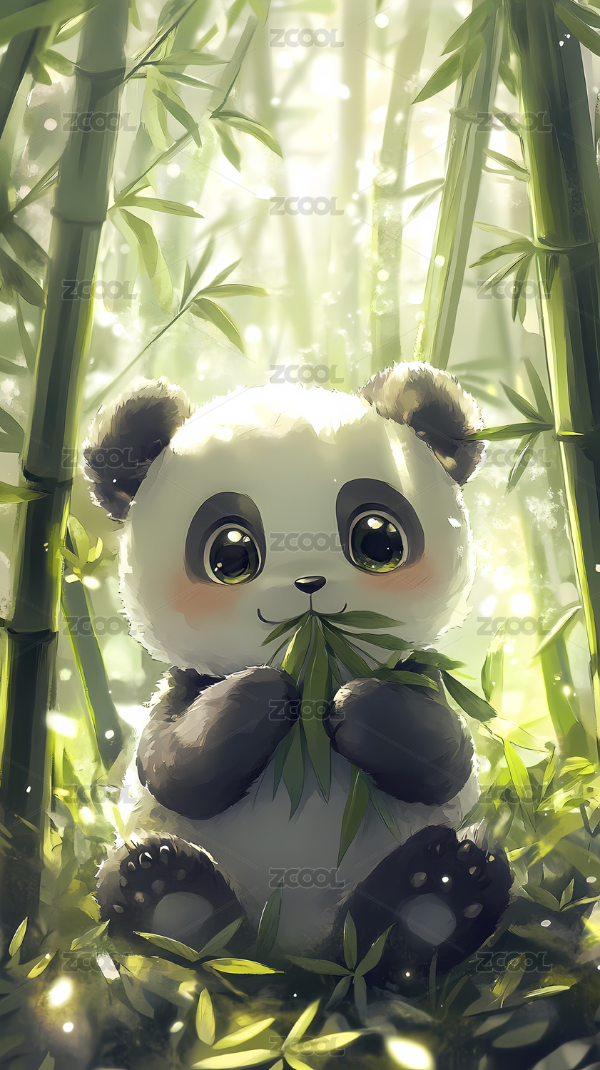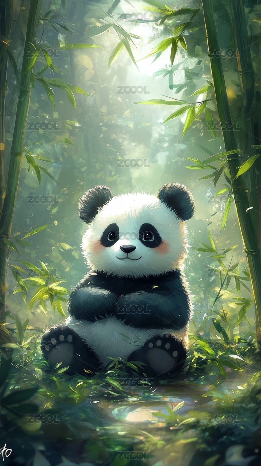 自然,绿色,森林,宁静,快乐,熊猫,动物,可爱,竹子,卡通