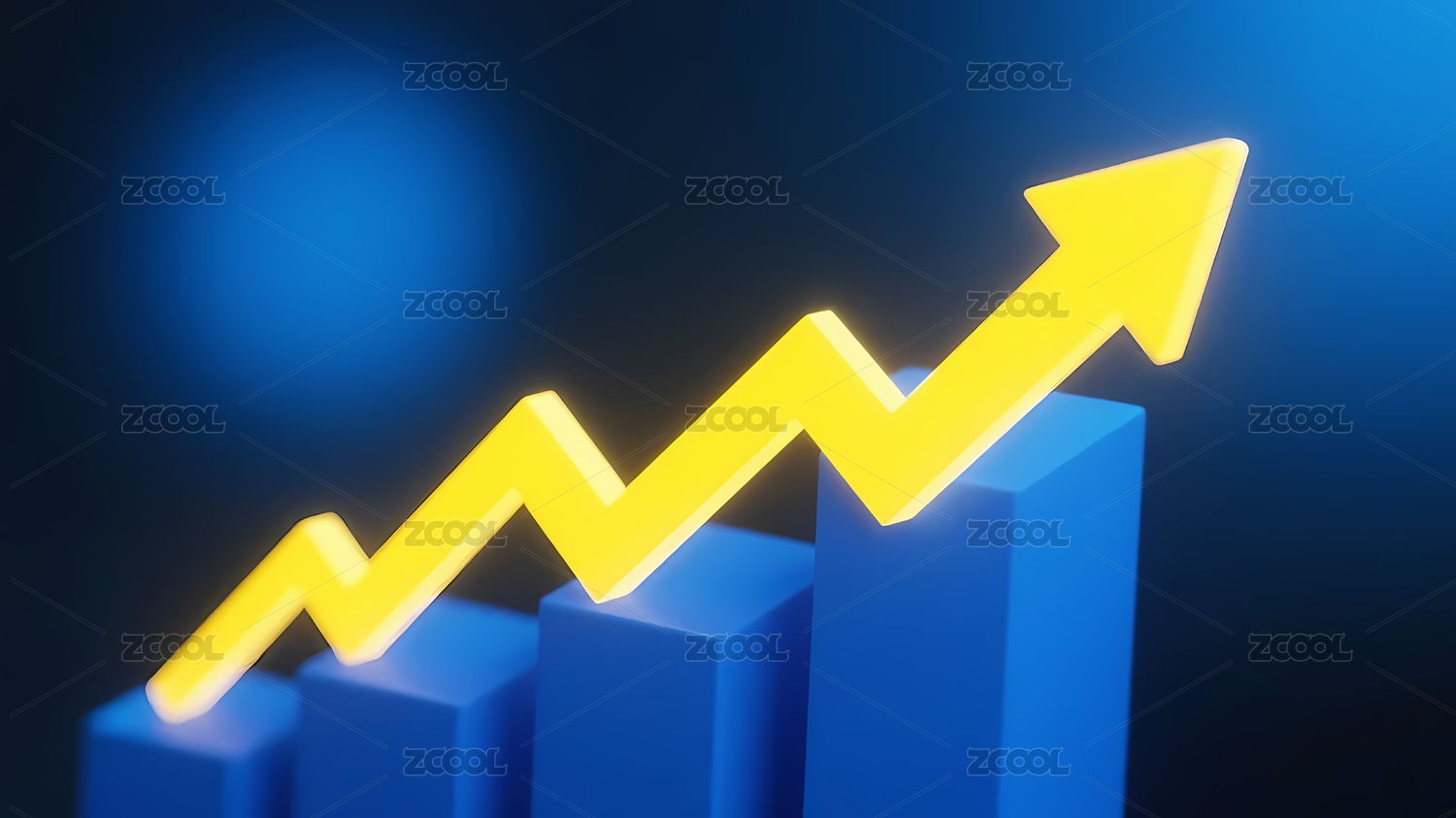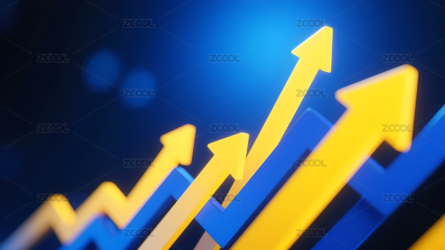 蓝金色渐变玻璃质感金融柱状图增长箭头背景