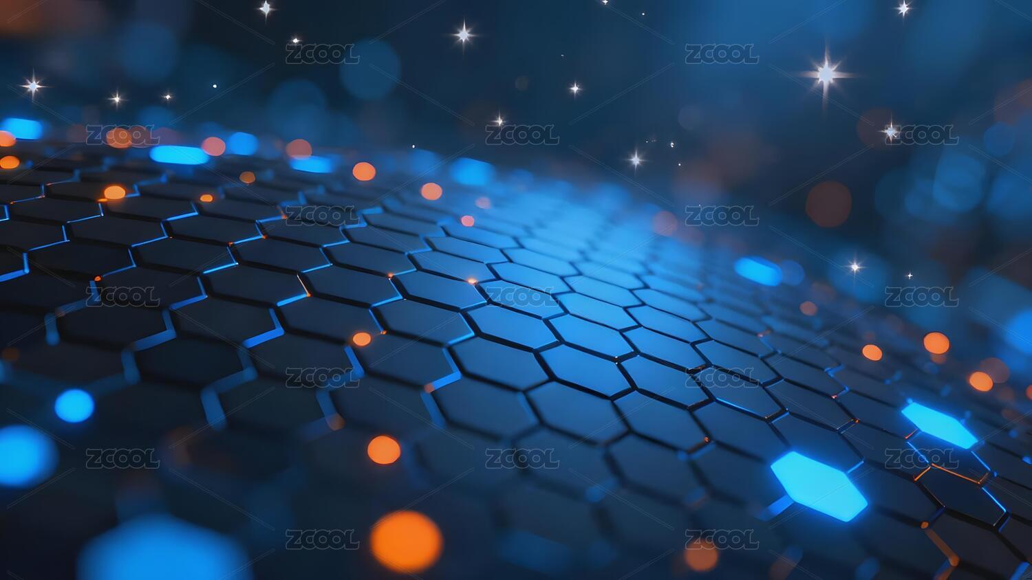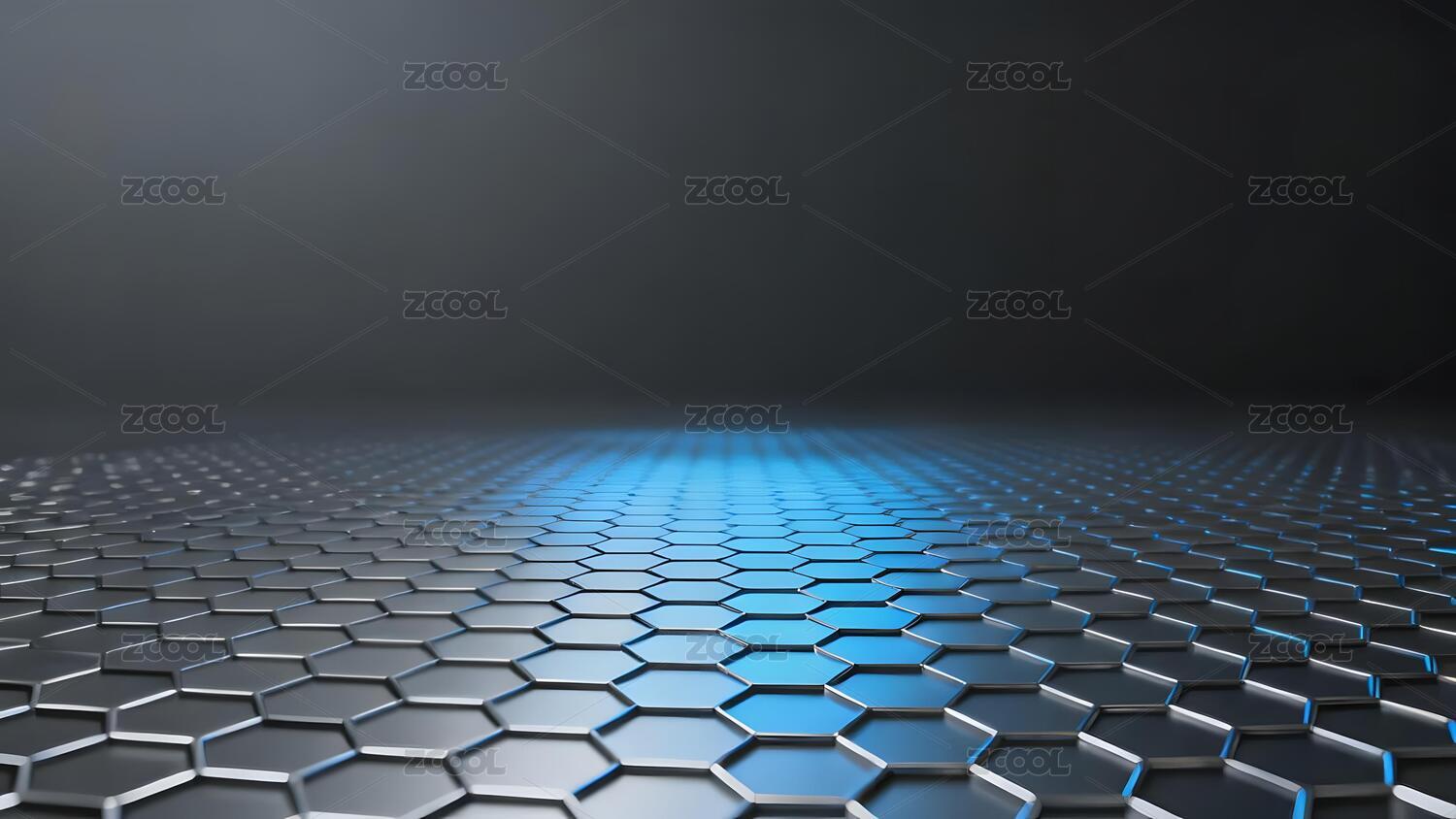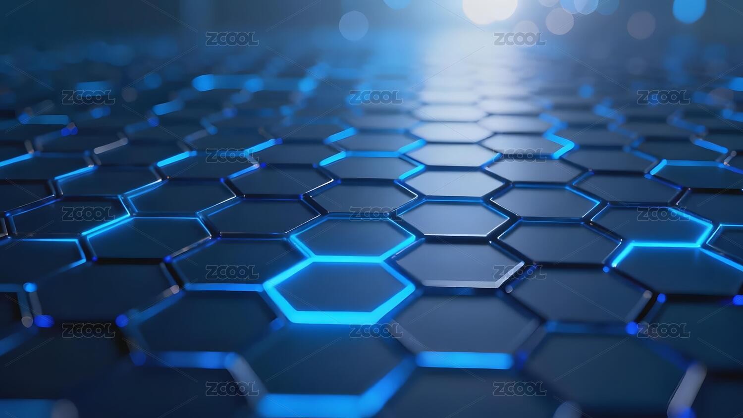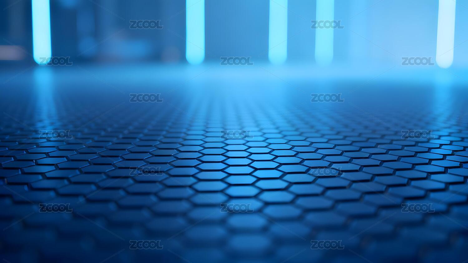 蓝色六边形框架背景设计,3D渲染的灯光科