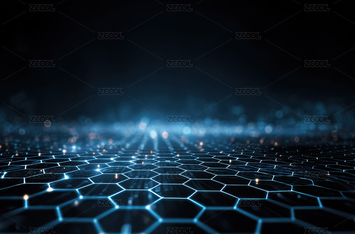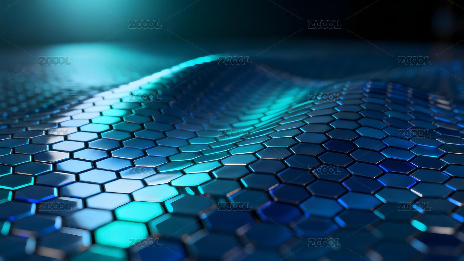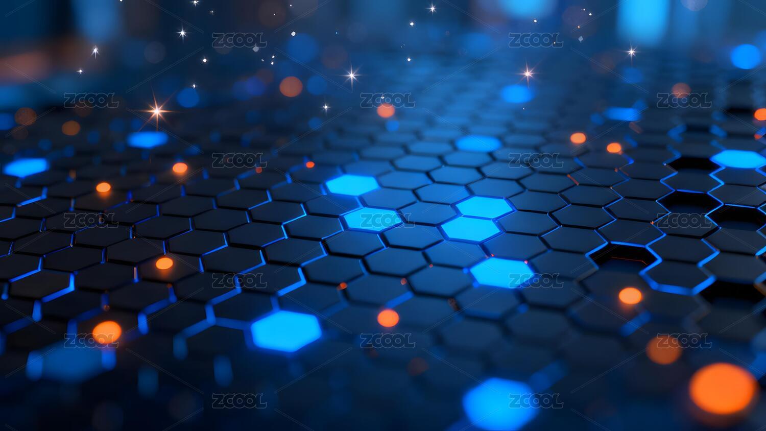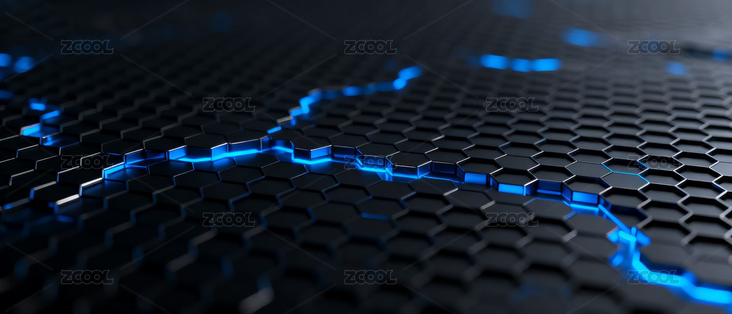 蓝色六边形框架背景设计,3D渲染的灯光科