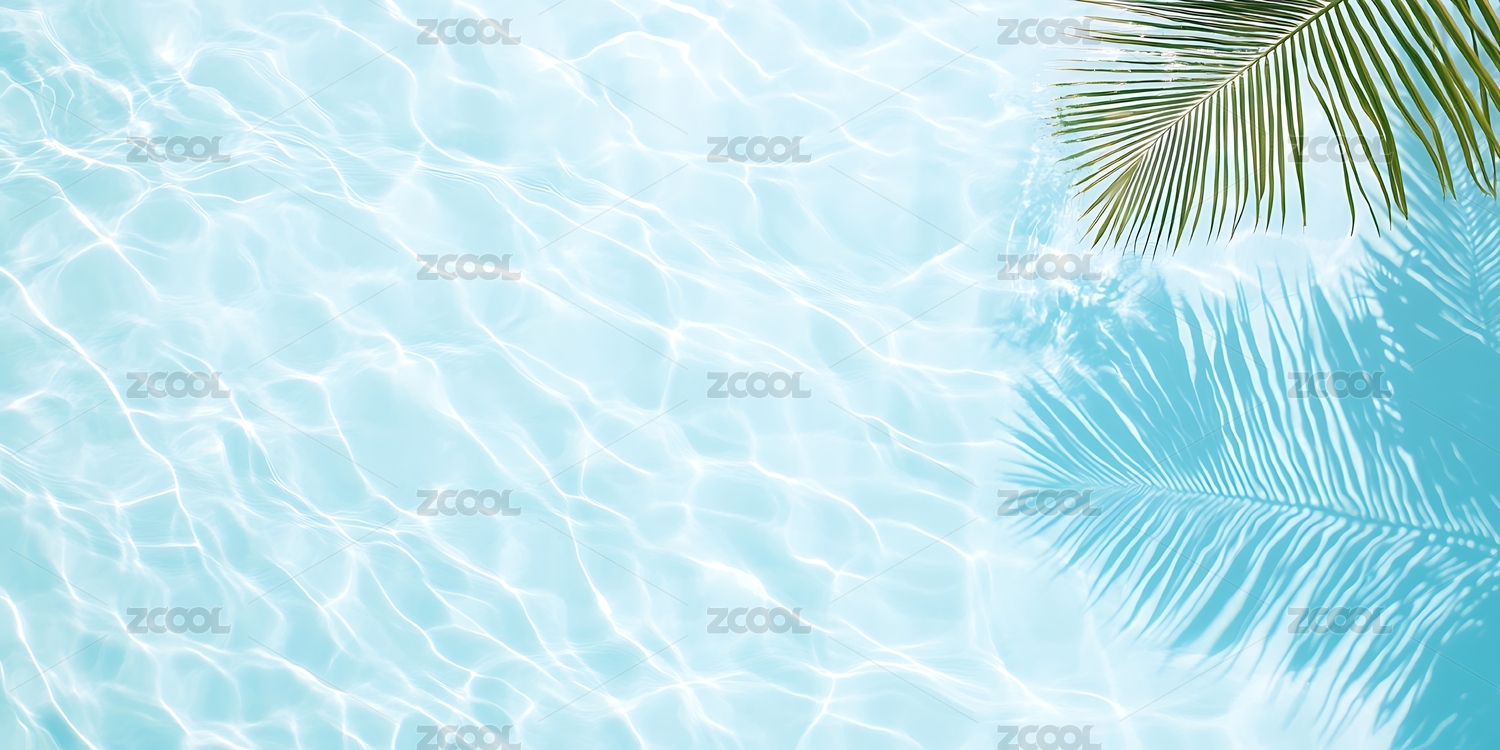 蓝色背景下的棕榈树和桌子上的植物特写镜头