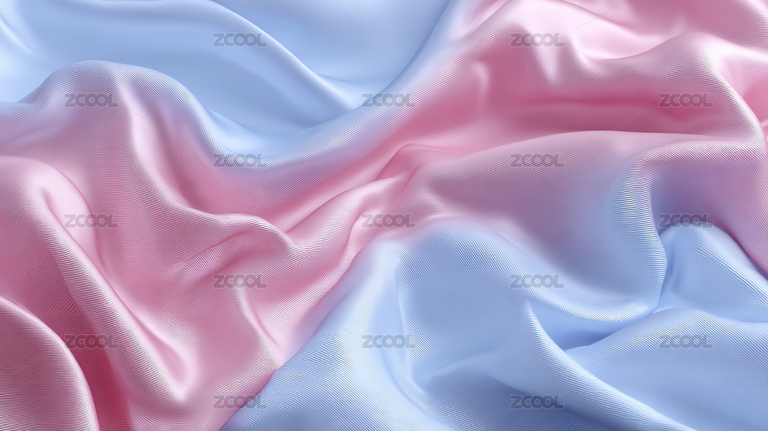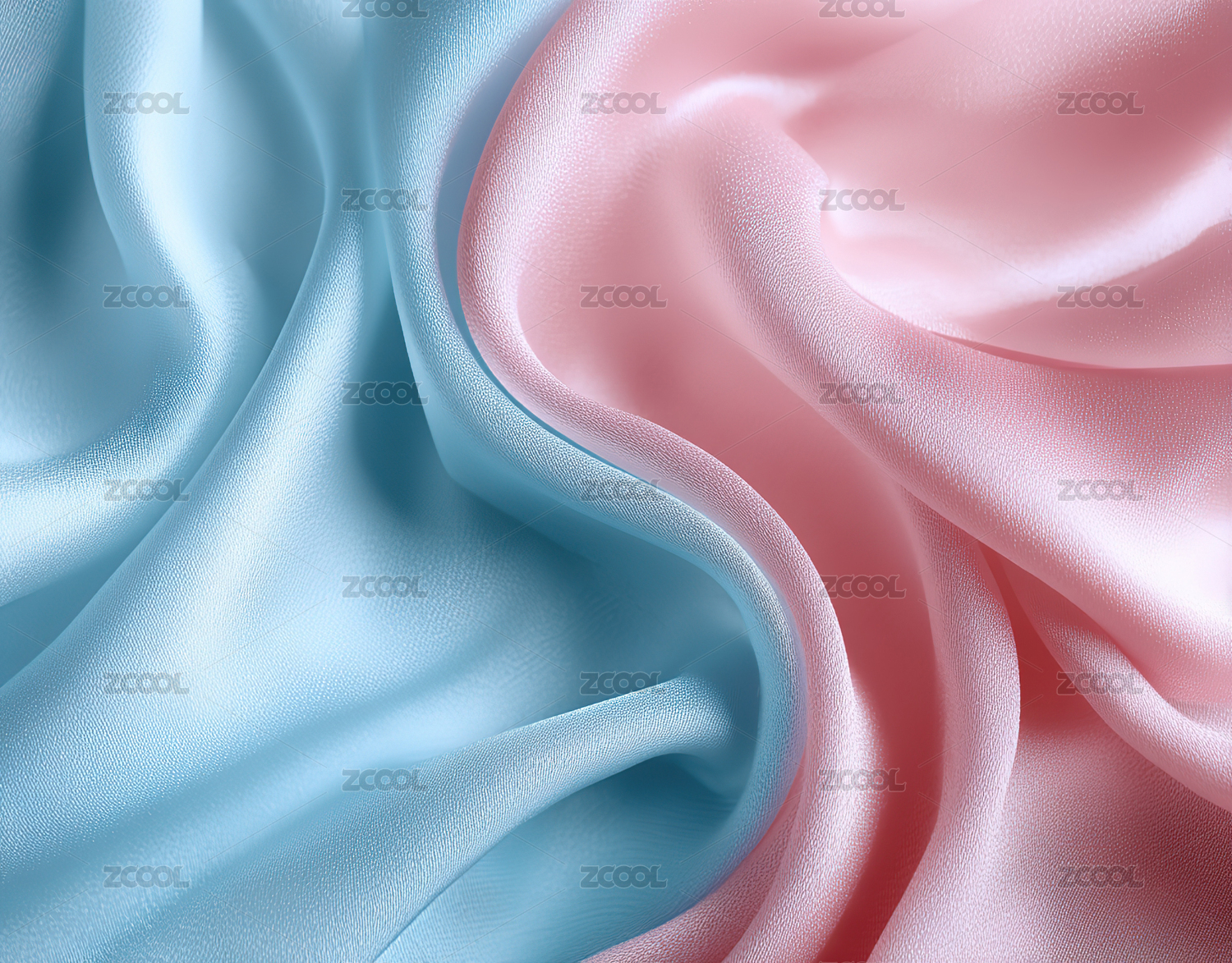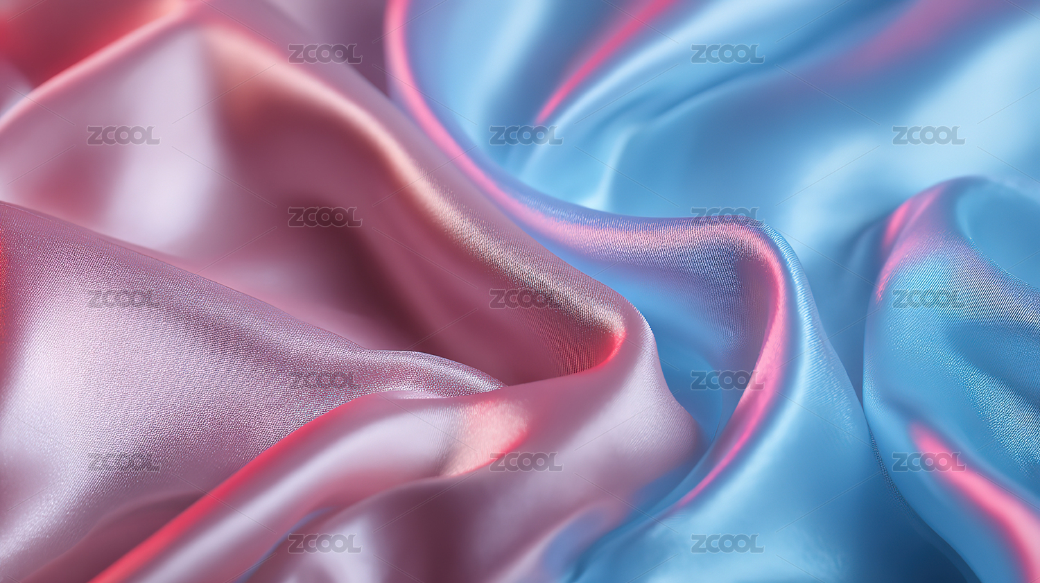 柔滑丝质面料的粉色与蓝色交织