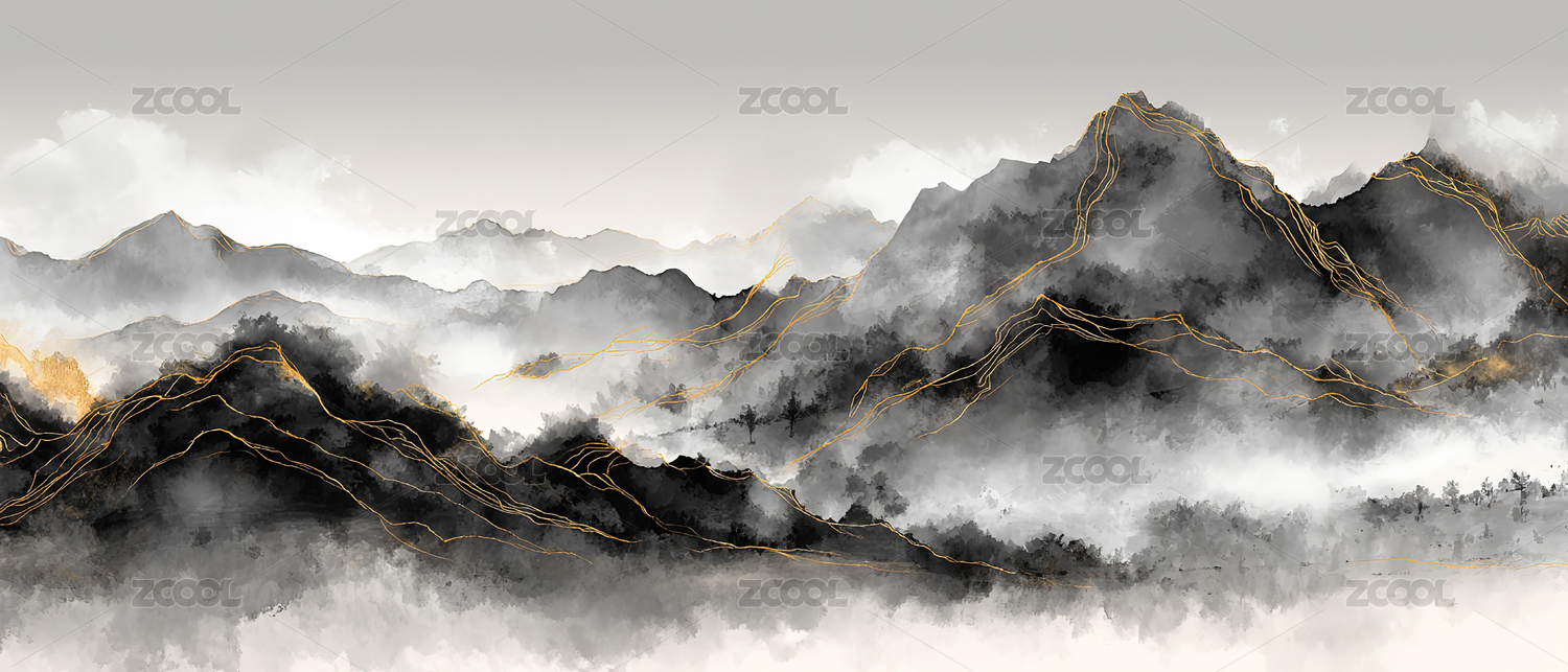 水墨逸境金彩覆山图背景