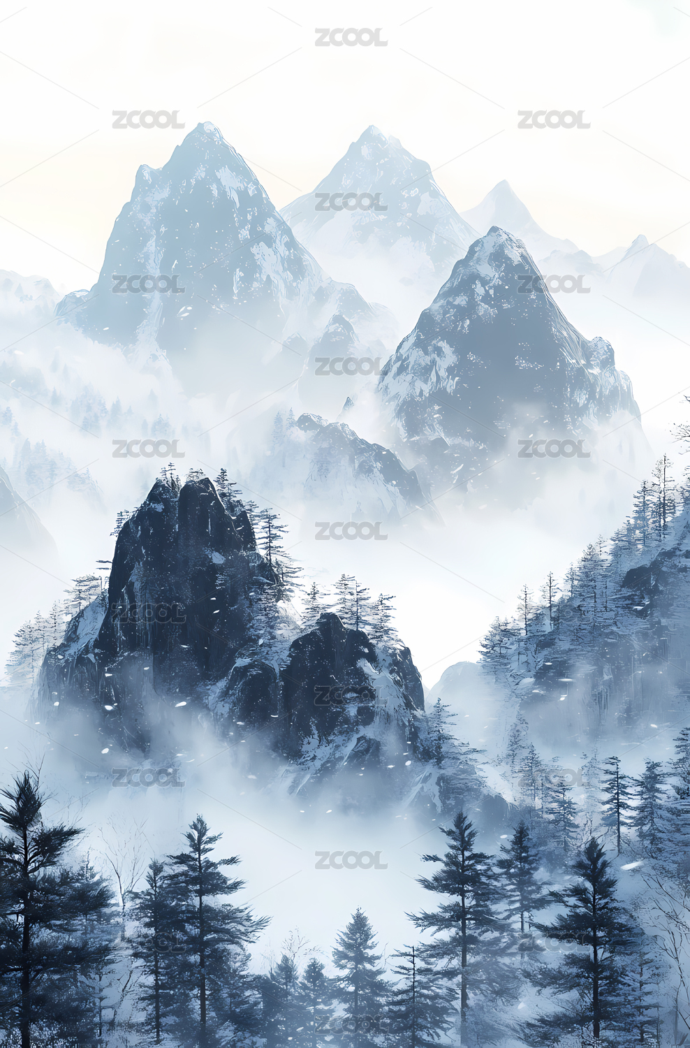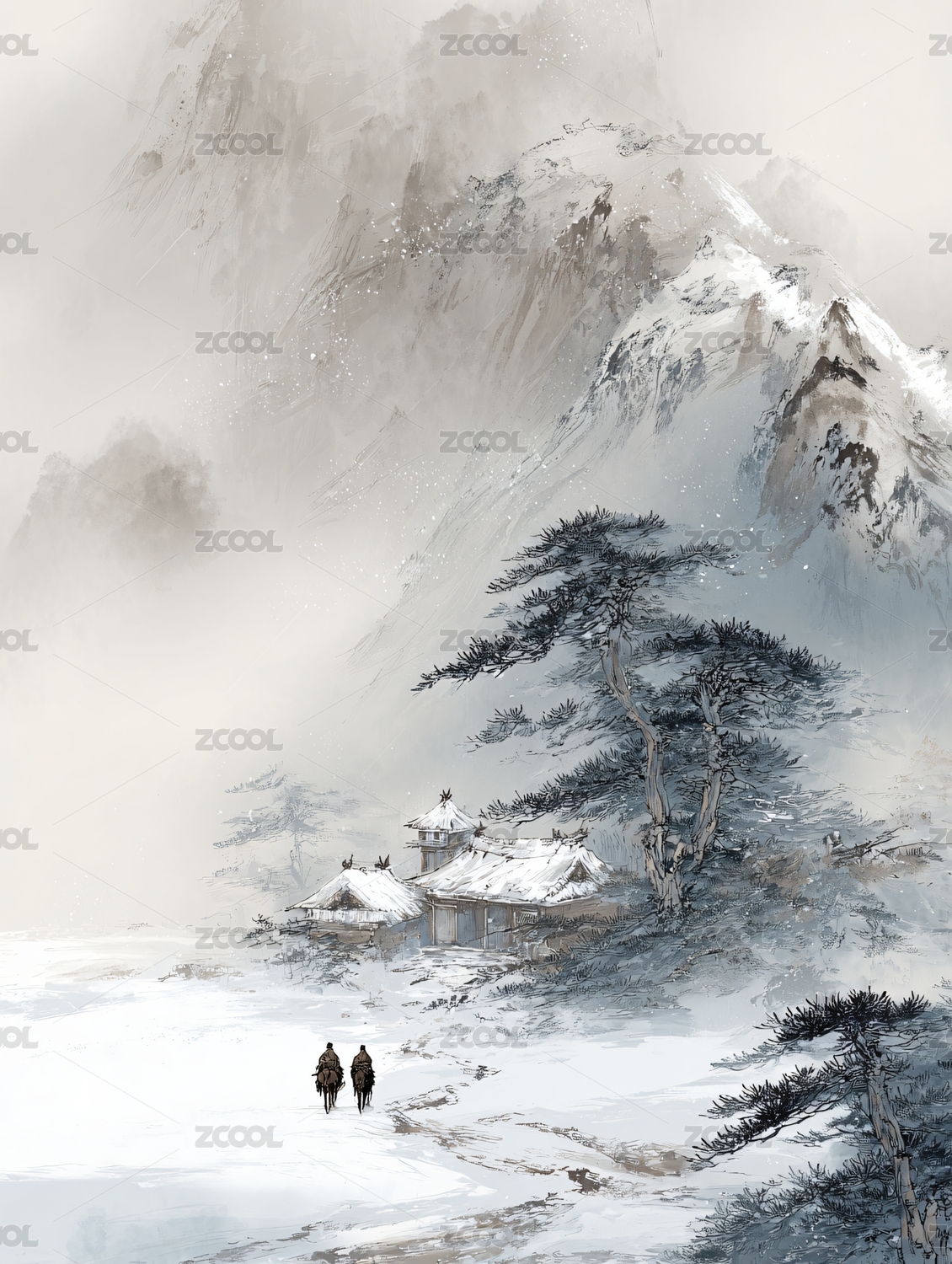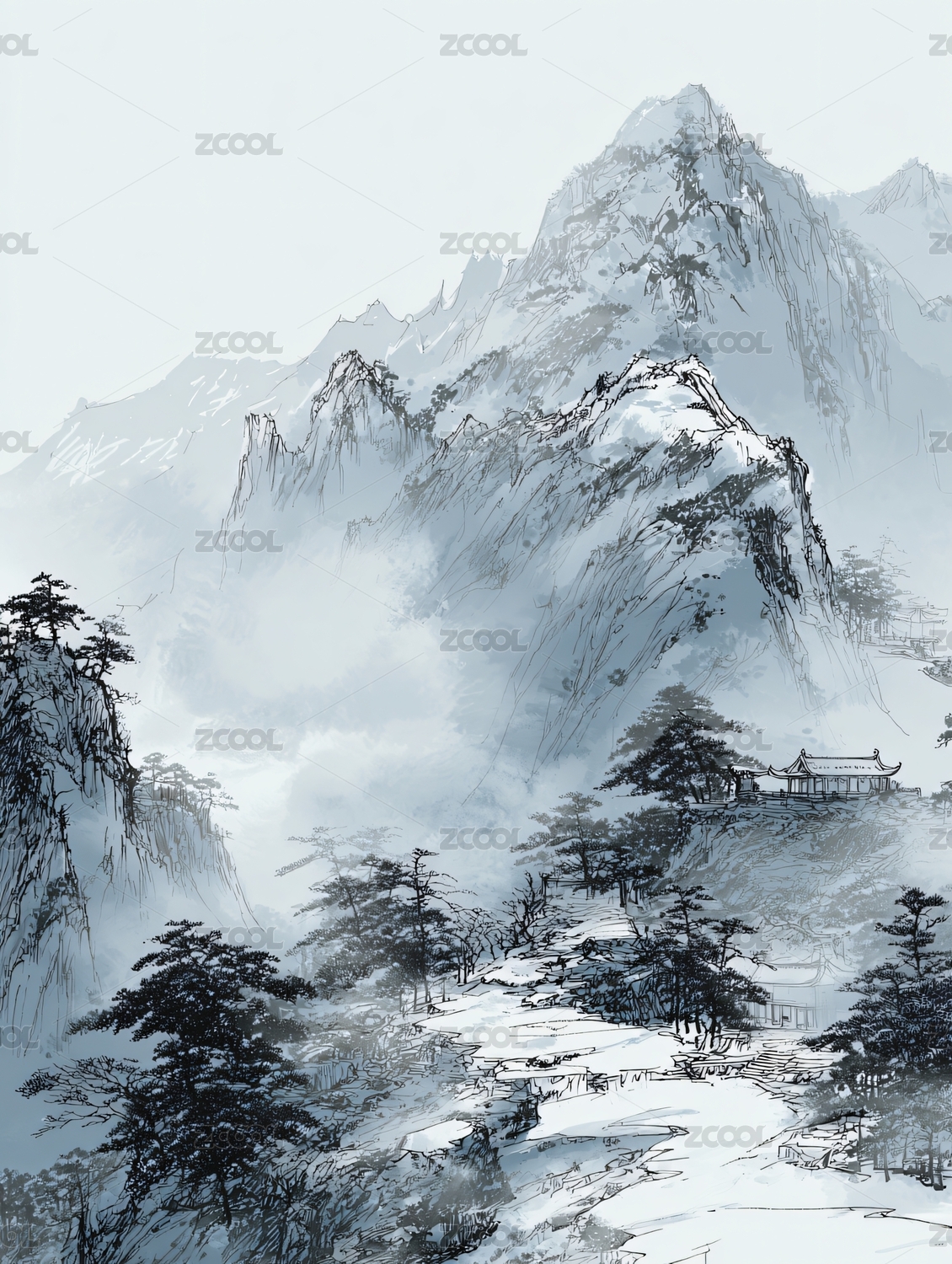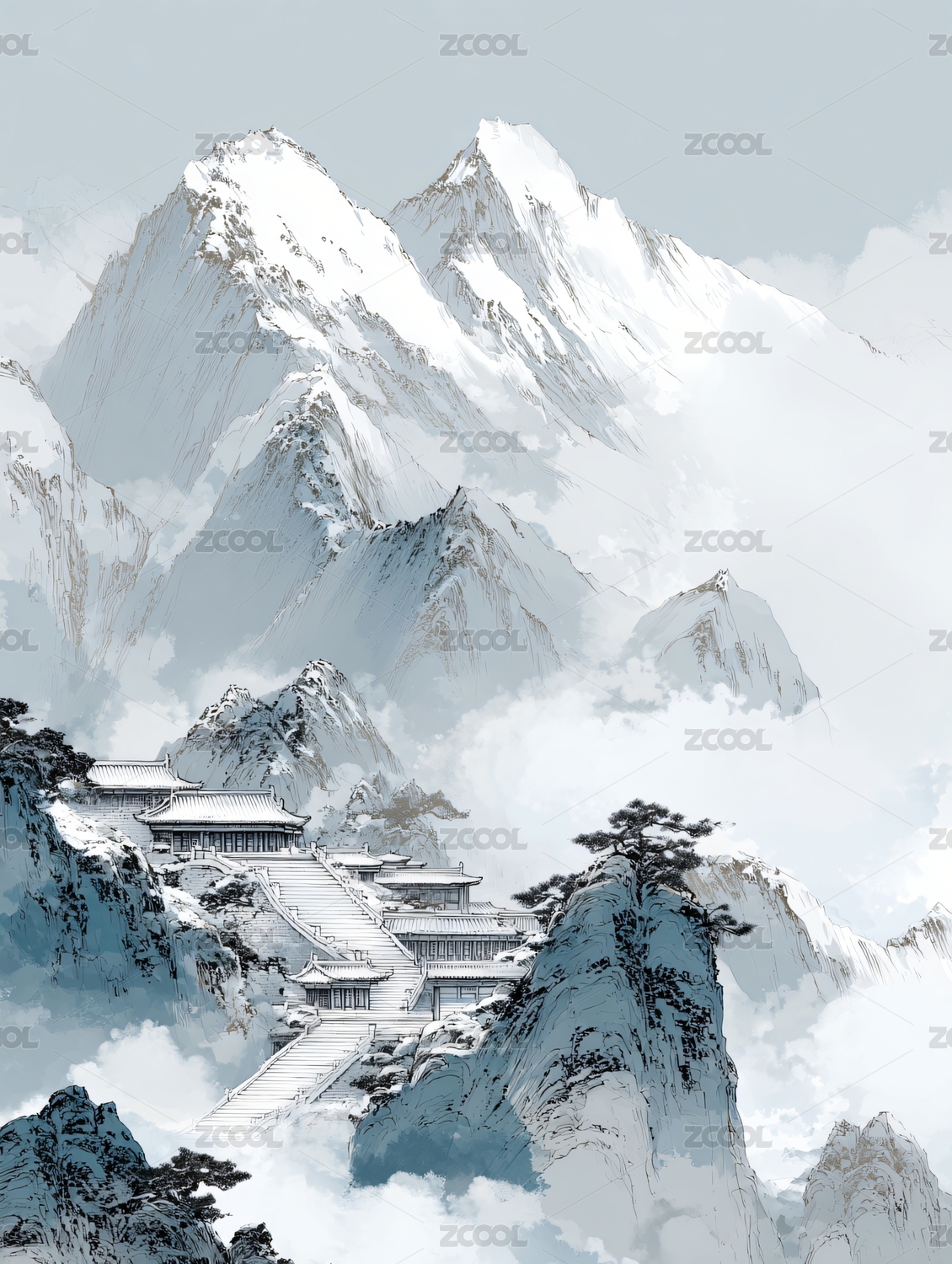 国风雪山插画