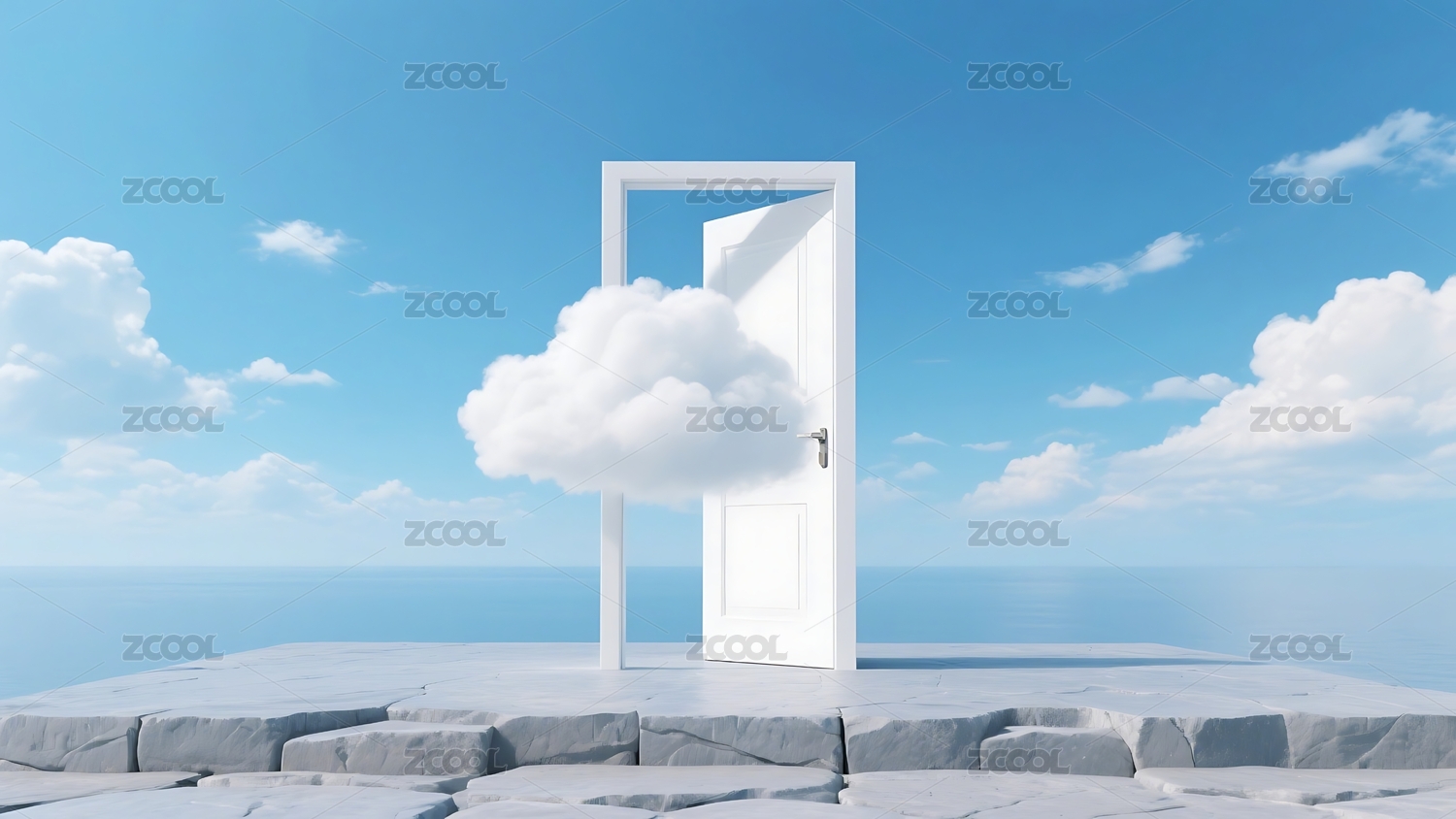 云朵,门框,蓝天,平台,极简,超现实,通道,幻想,艺术,空间