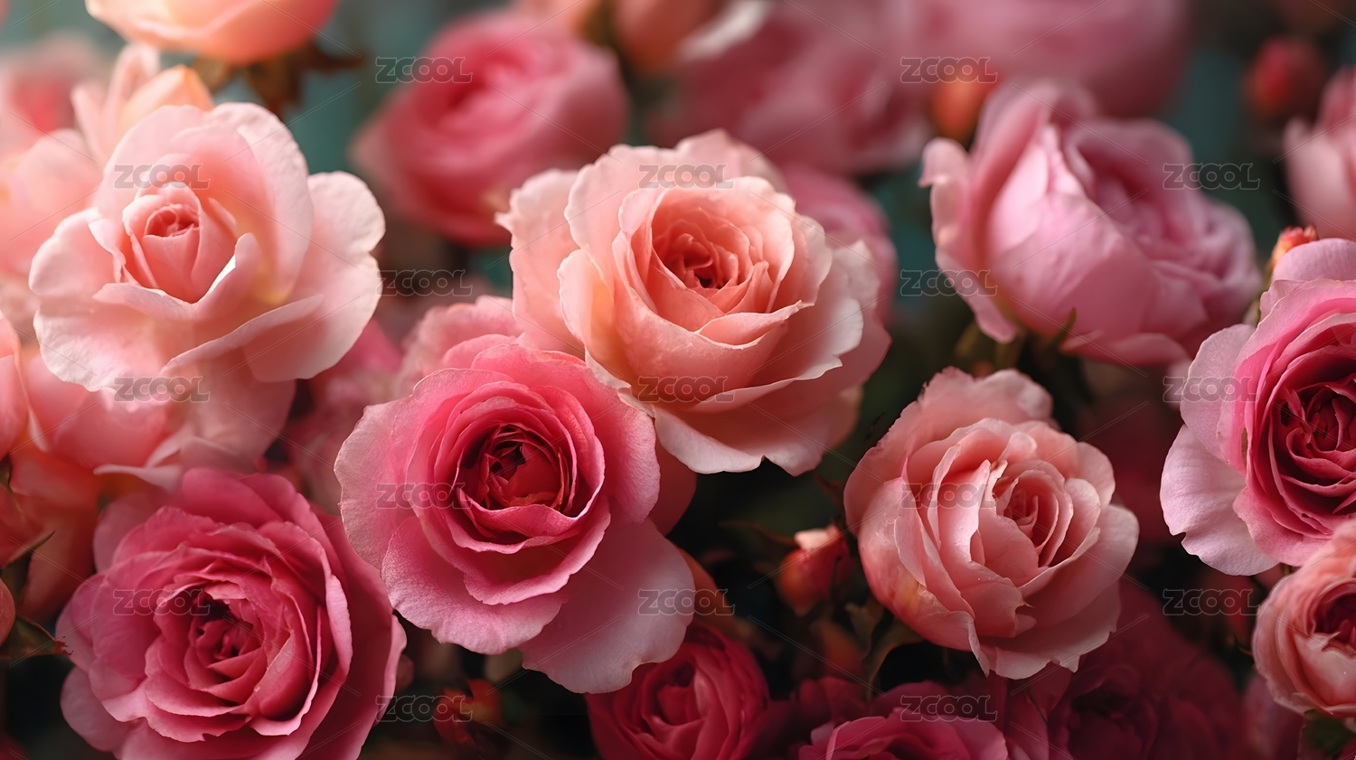 粉色玫瑰花束特写