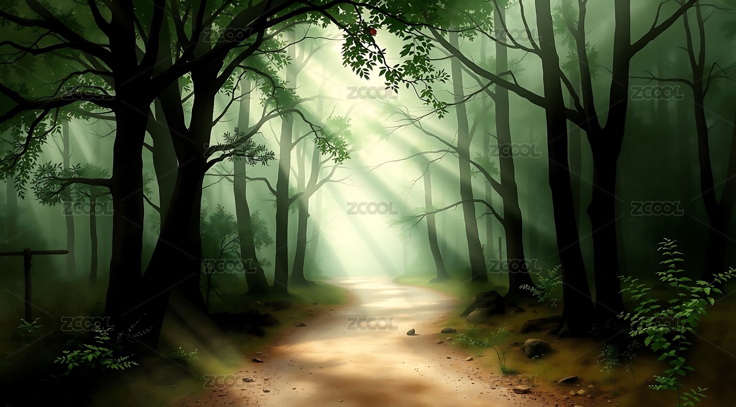 林间晨辉洒幽径