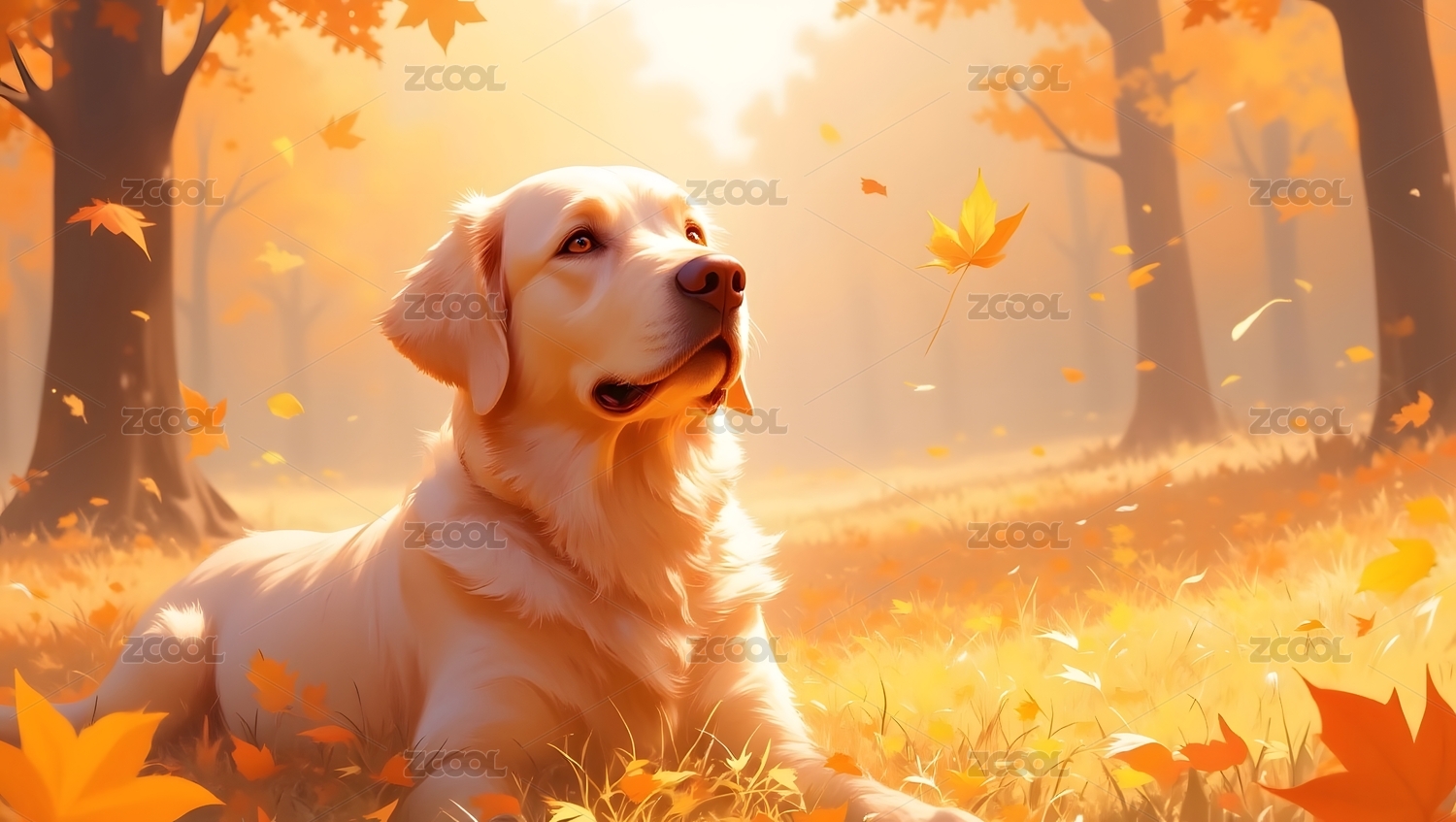 金毛犬秋日森林