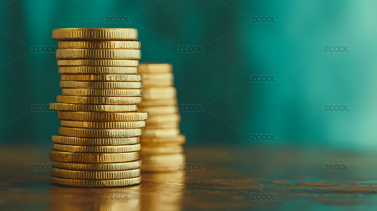 金色硬币堆叠光影效果
