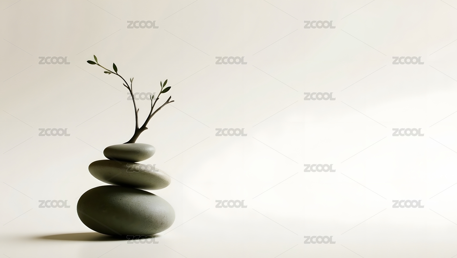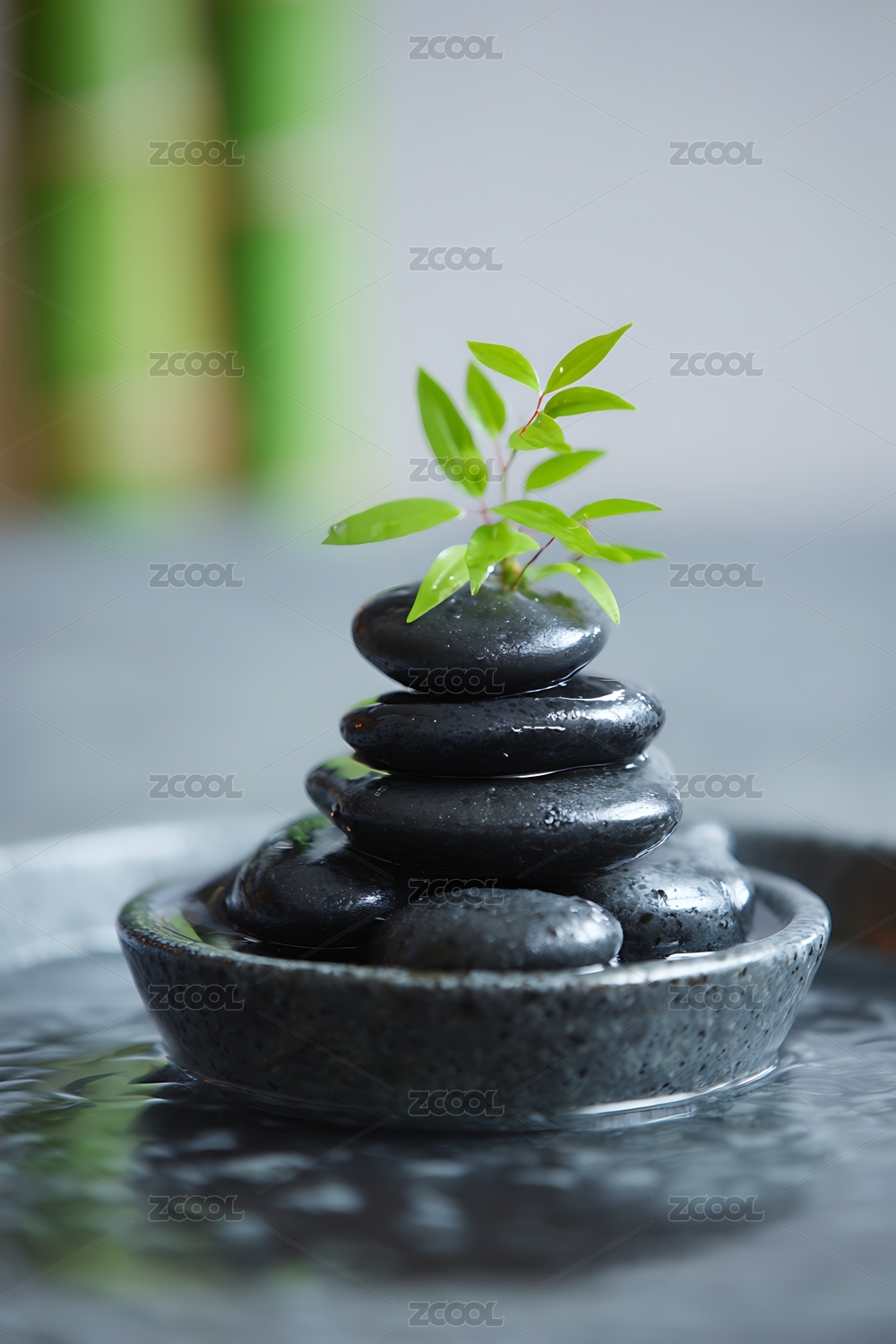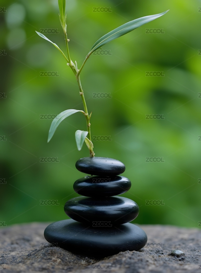 禅意黑石绿叶静谧意境