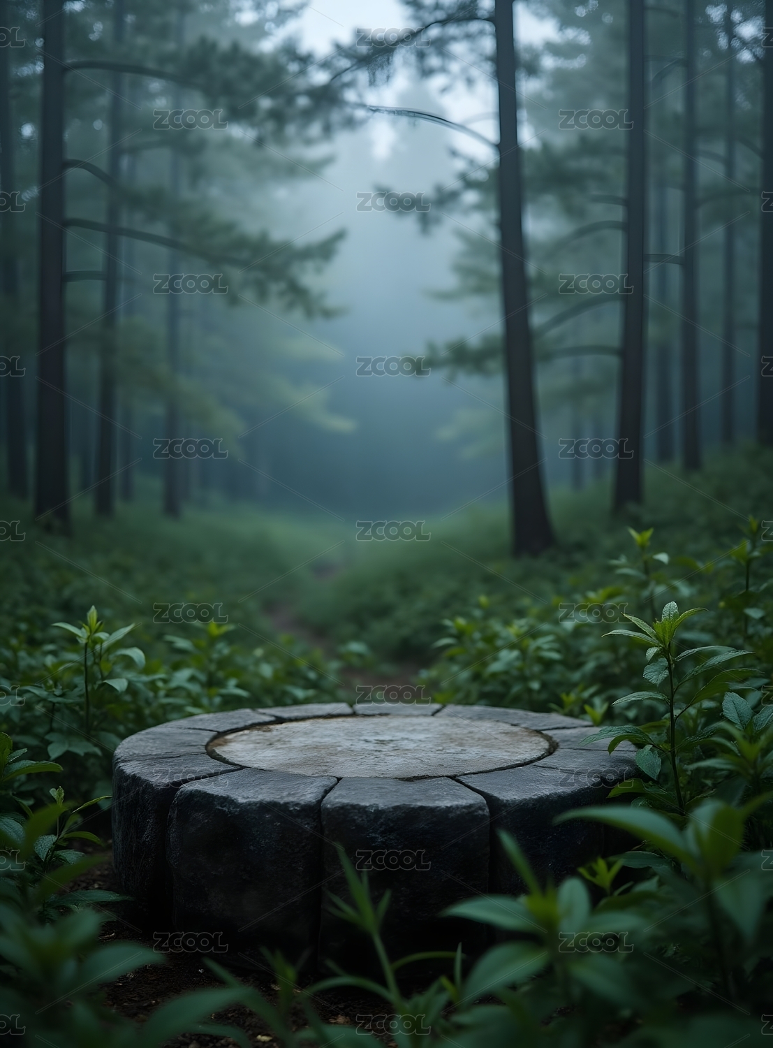 产品,展台,电商,场景,自然,植物,背景,绿色,阴影,石块