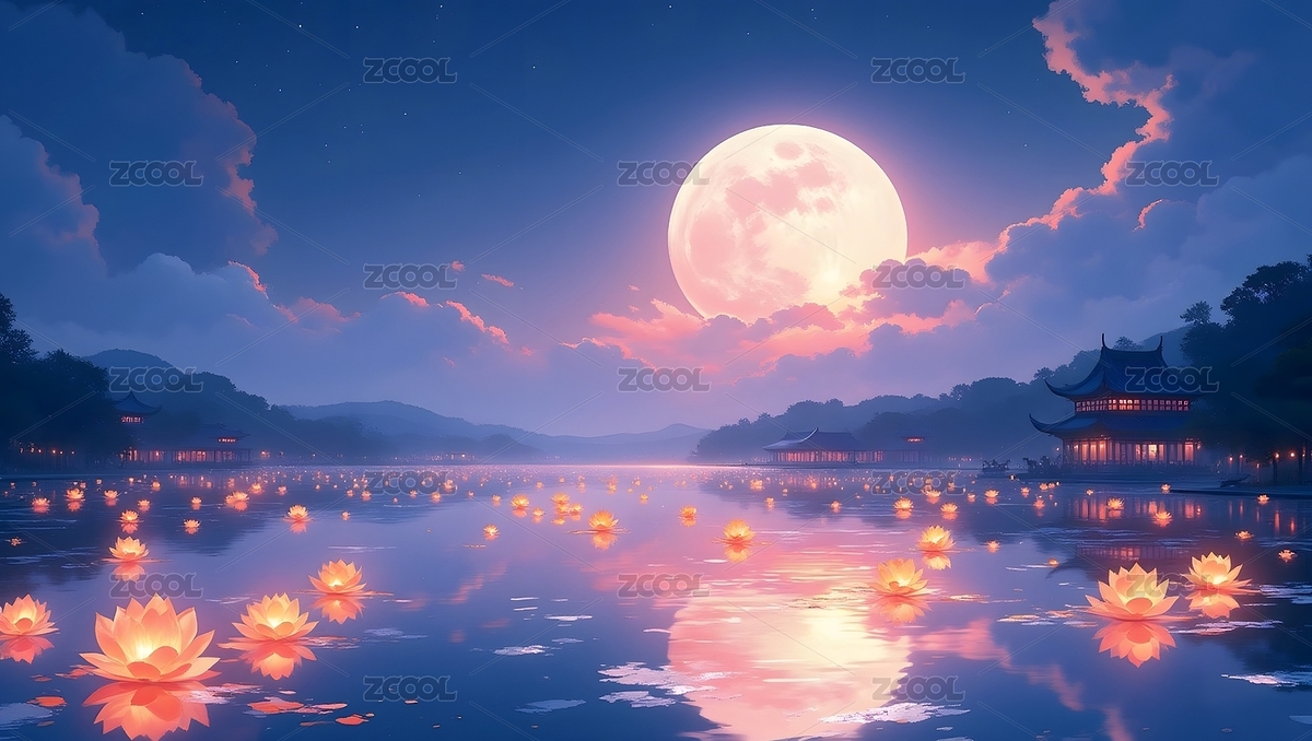 自然,柔和,宁静,建筑,树木,水面,反射,远山,风景,平和