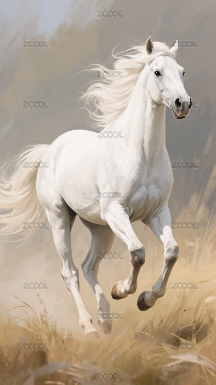 奔跑的白色骏马
