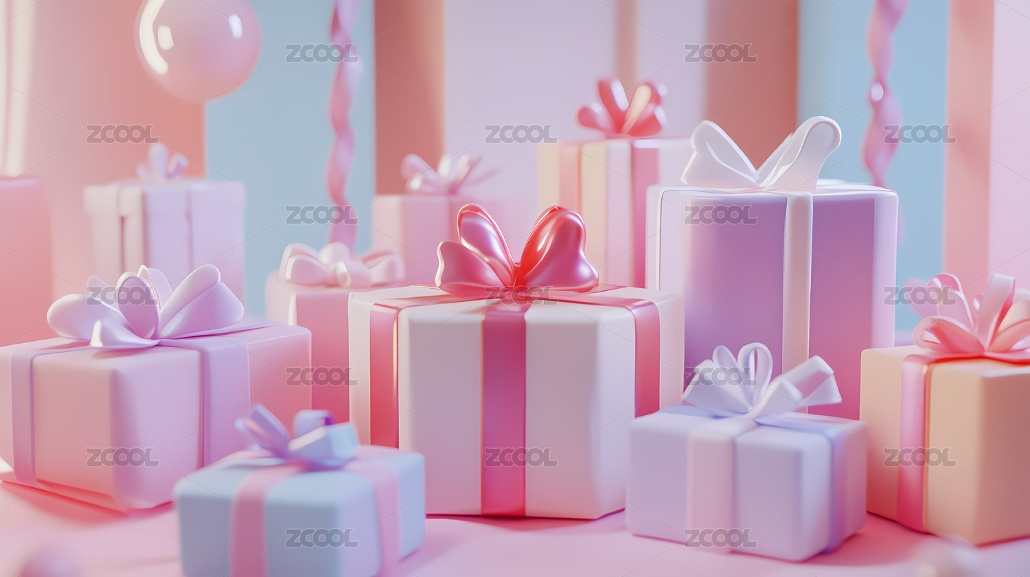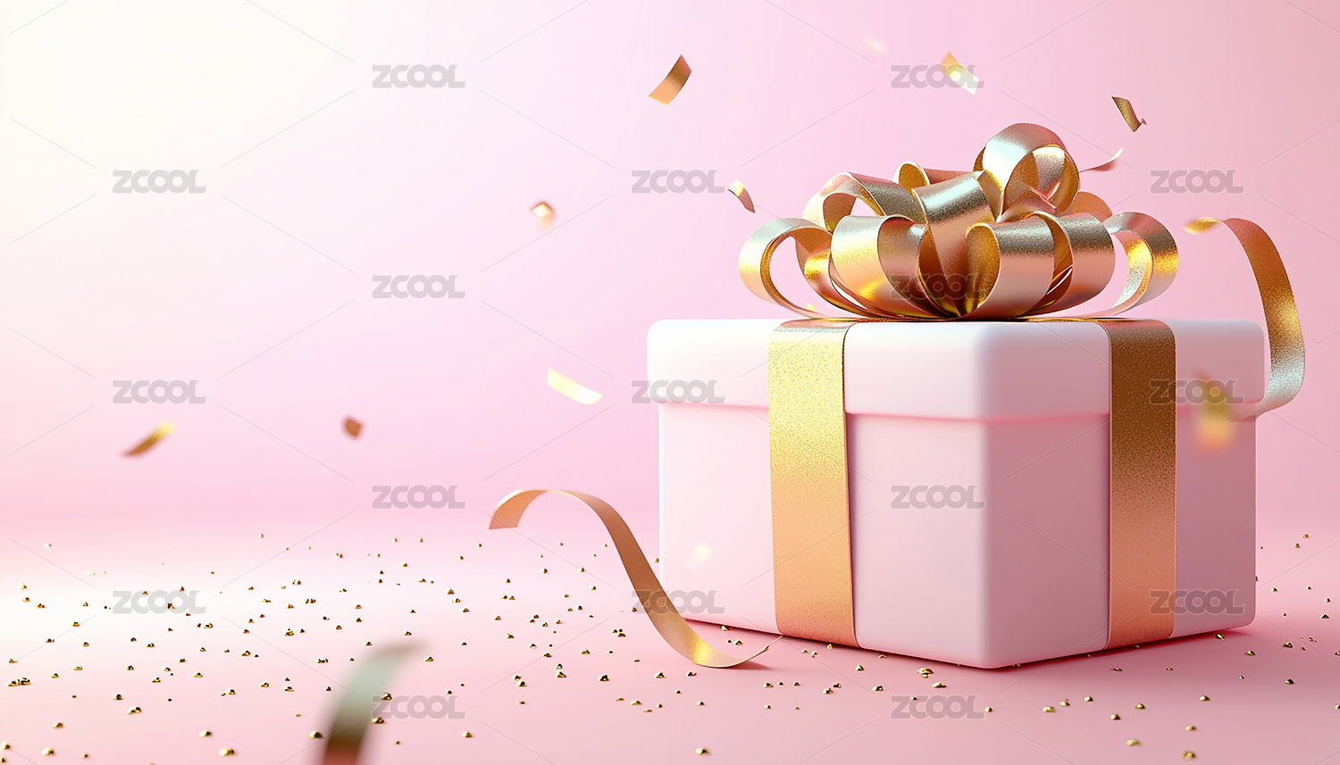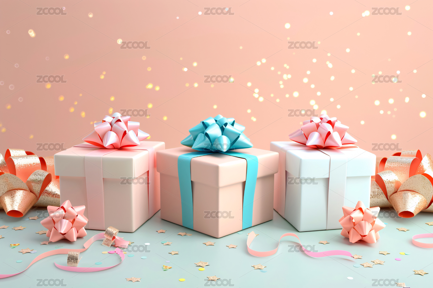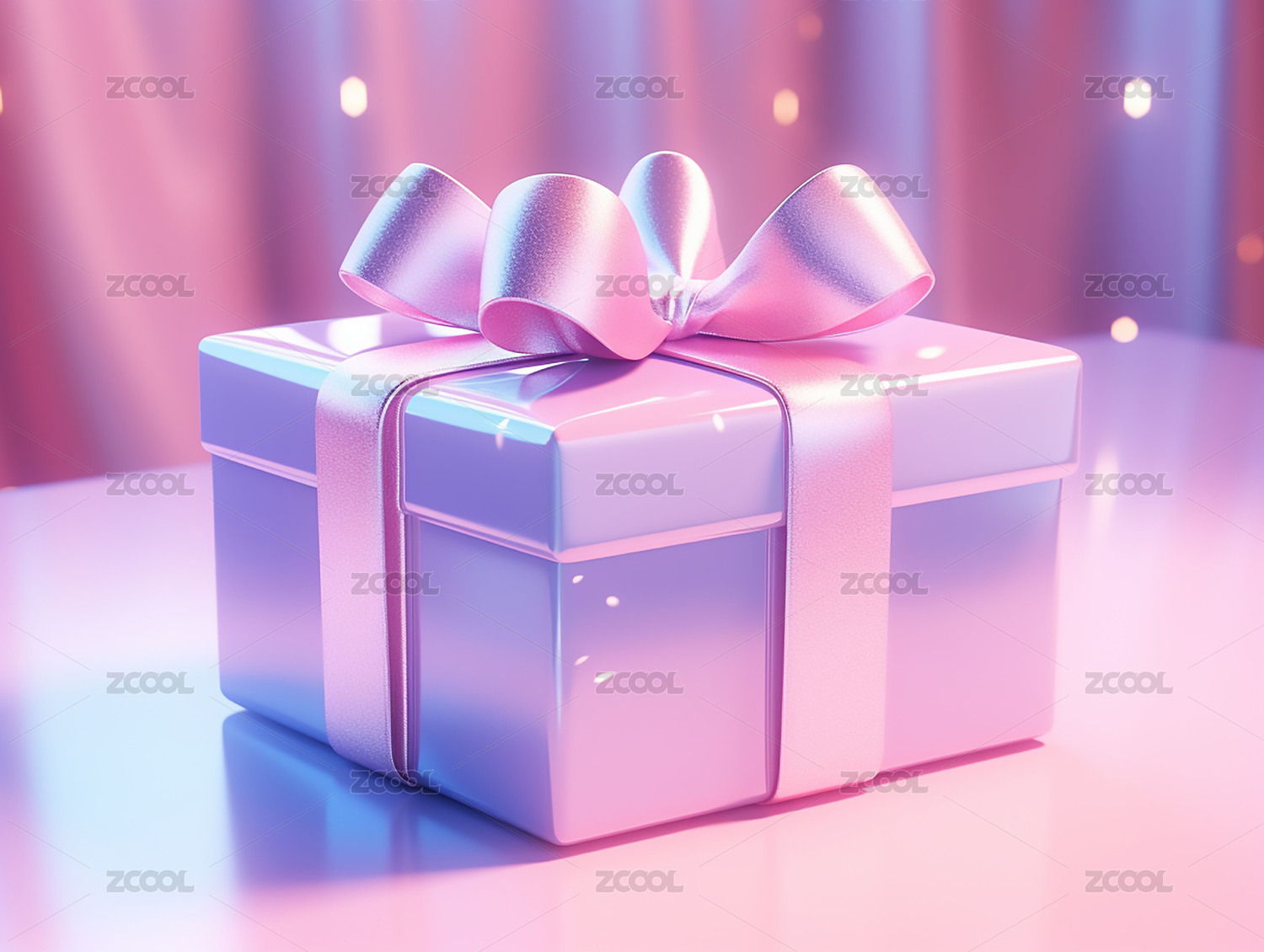 粉色礼物盒与蓝色蝴蝶结 庆祝氛围
