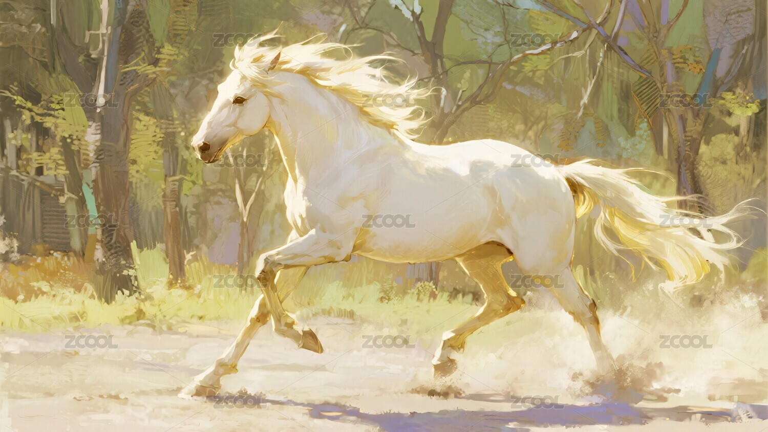 奔跑的白色骏马