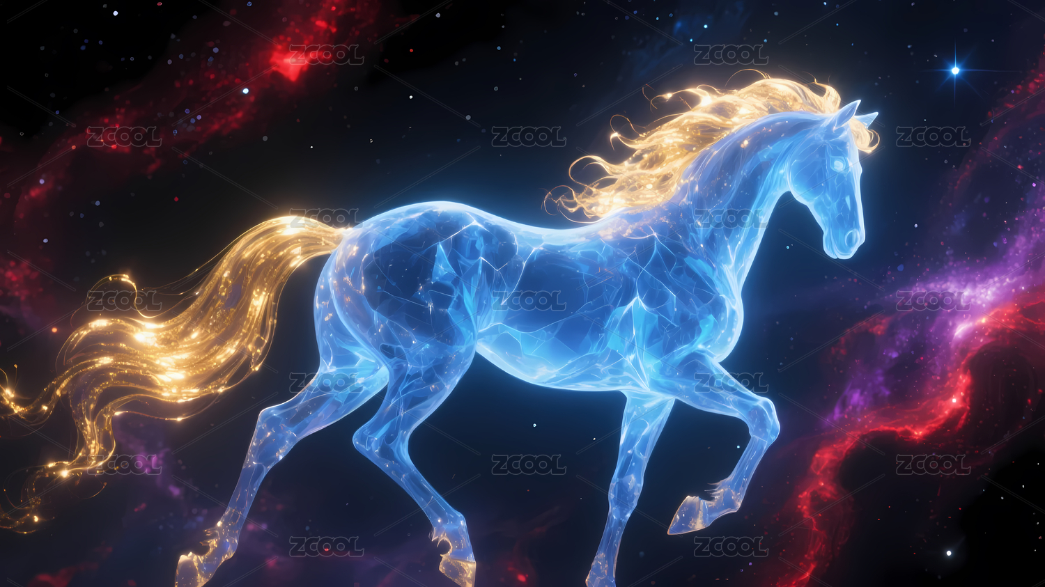 骏马,奔跑,透明,发光,星空,元素,插画,艺术,幻想,动感