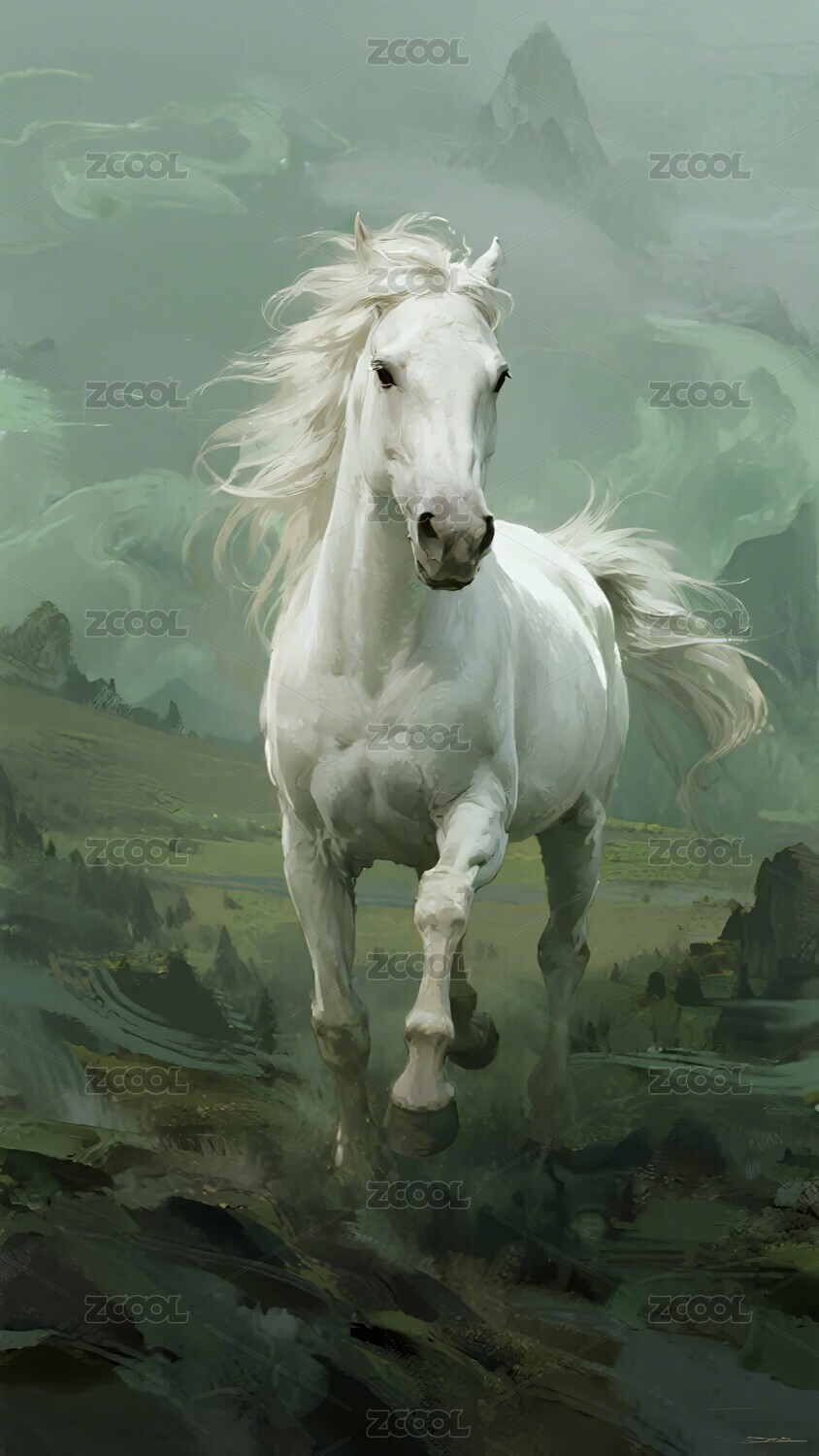 白马,奔跑,插画,骏马,动物,画面元素,艺术,动感,黑白,自然