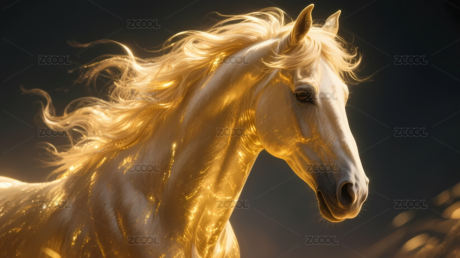 身披金色花纹的奔跑白马