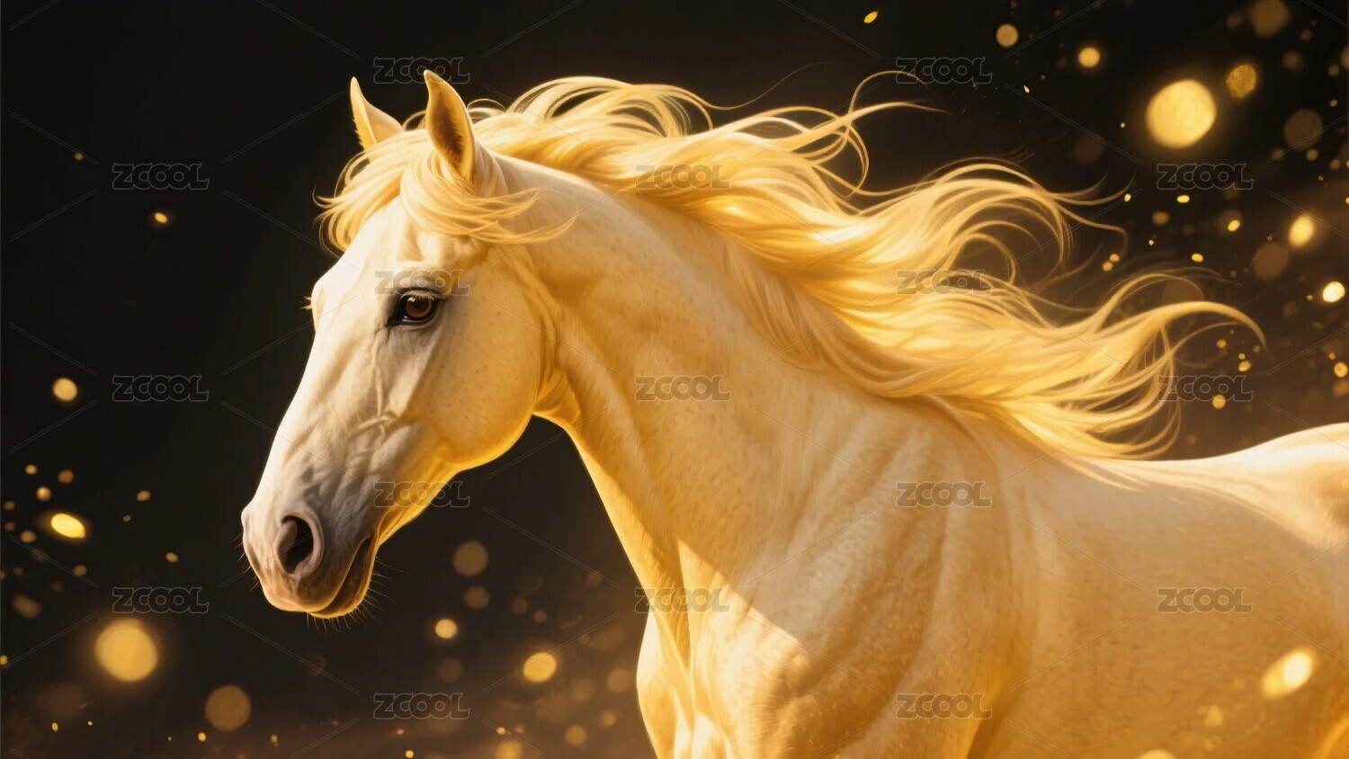 金色光芒中的飞驰白马