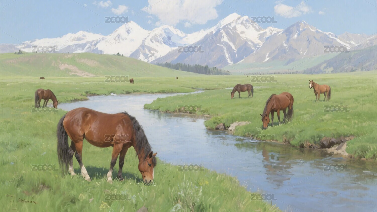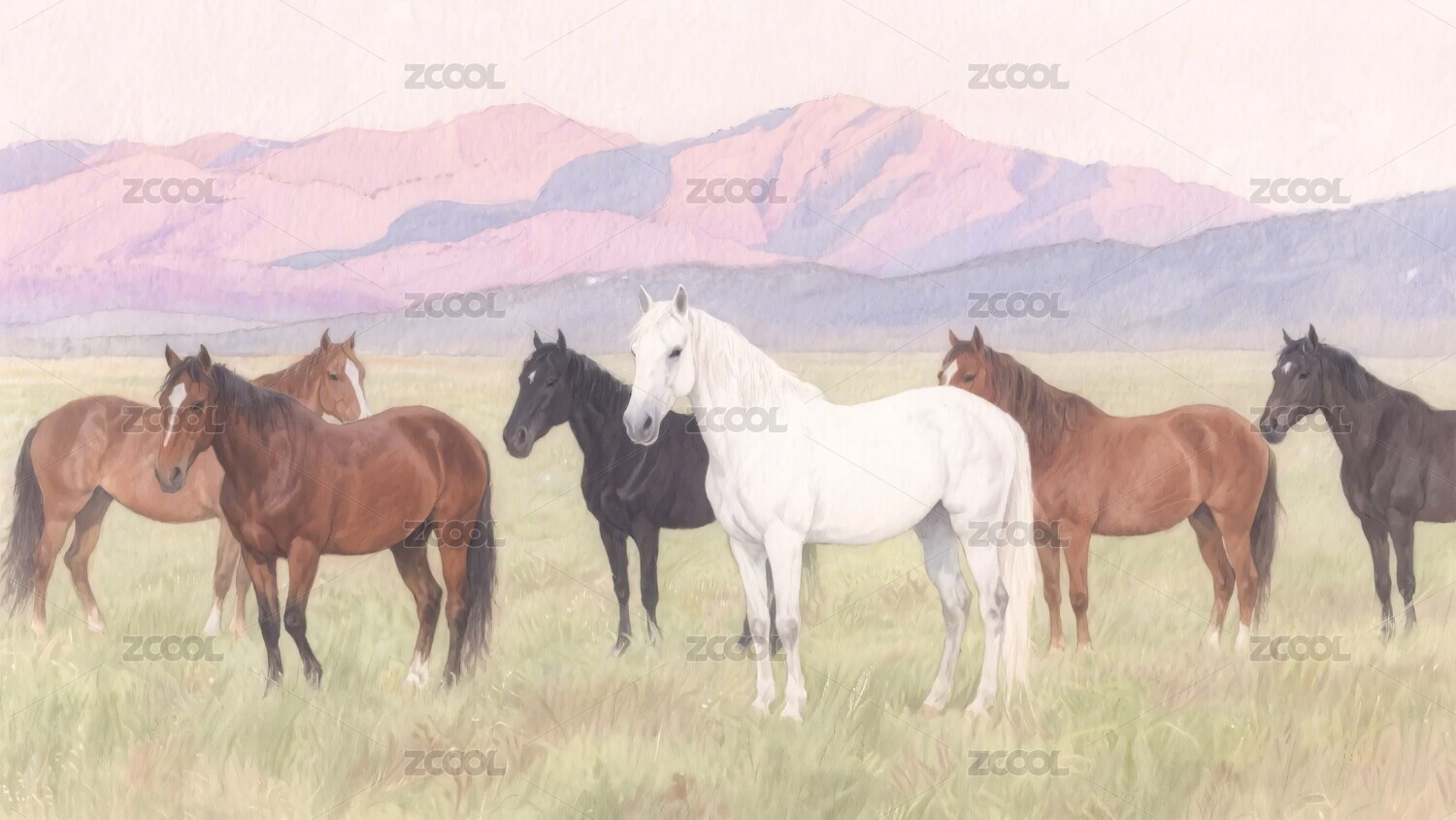 草原马群风景画