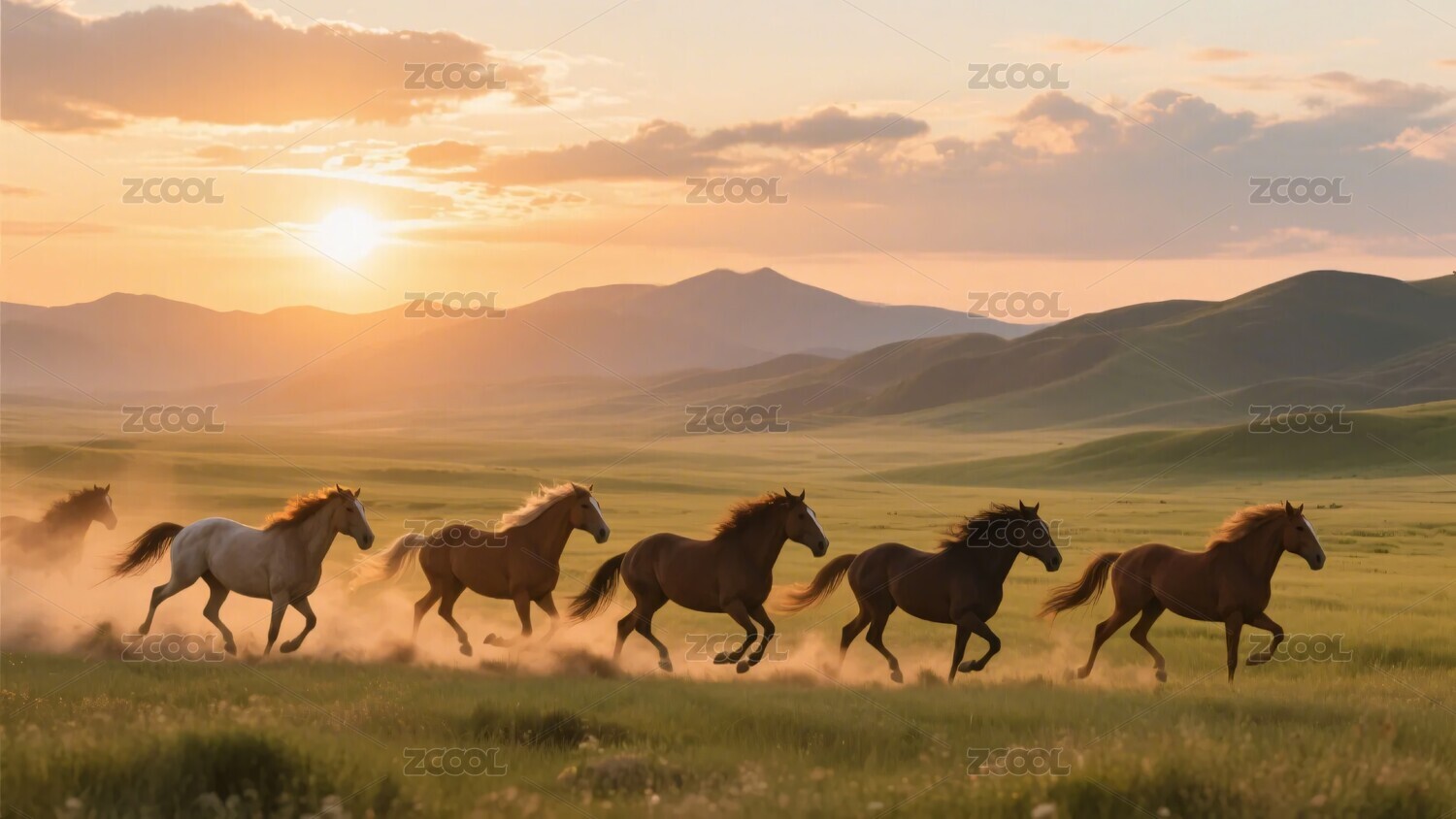 草原,山丘,奔跑,自然,风景,画面元素,主题,插画,背景,动物