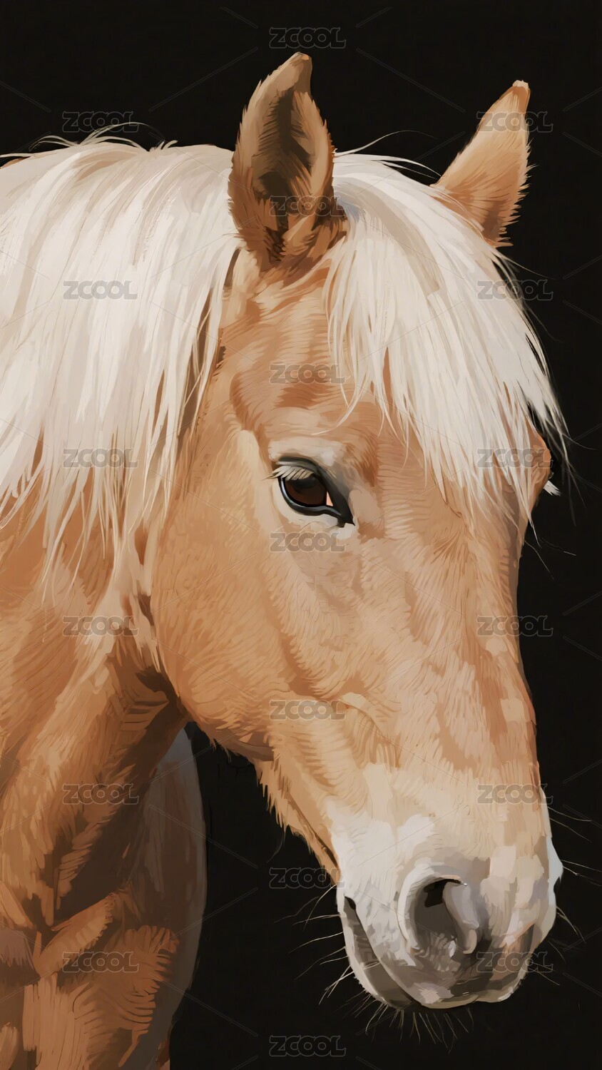 头部,水彩,插画,动物,毛发,特写,棕白相间,骏马,艺术,画面元素