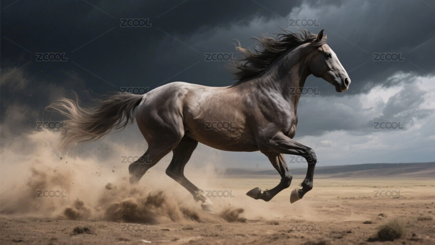 奔跑,夕阳,尘土,插画,自然,风景,动态,活力,动物,户外