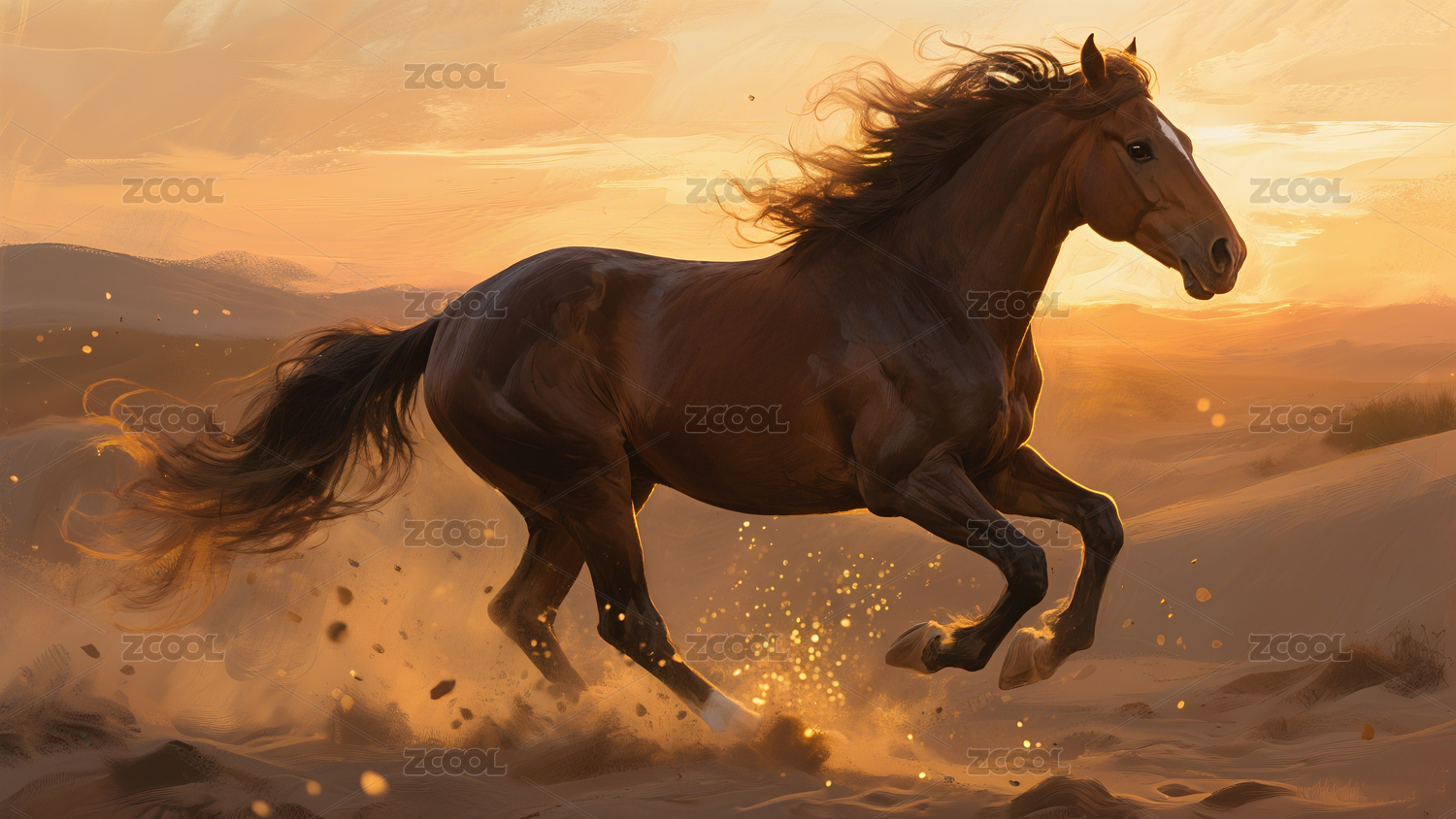 奔跑,夕阳,草地,天空,插画,动物,自然,风景,动态,活力