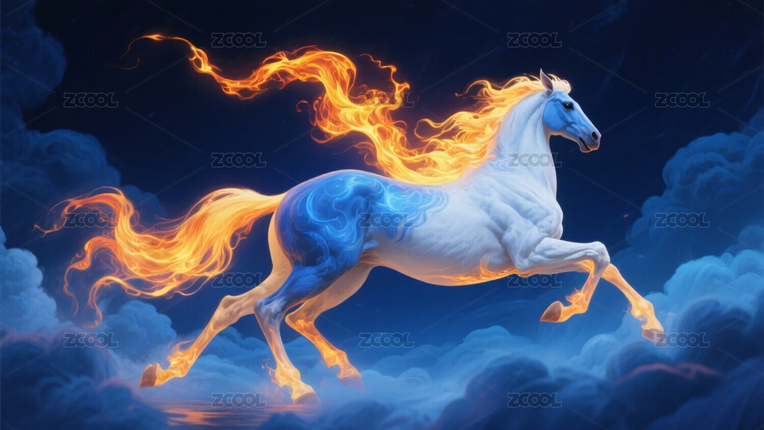 云端奔腾的幻彩火焰马