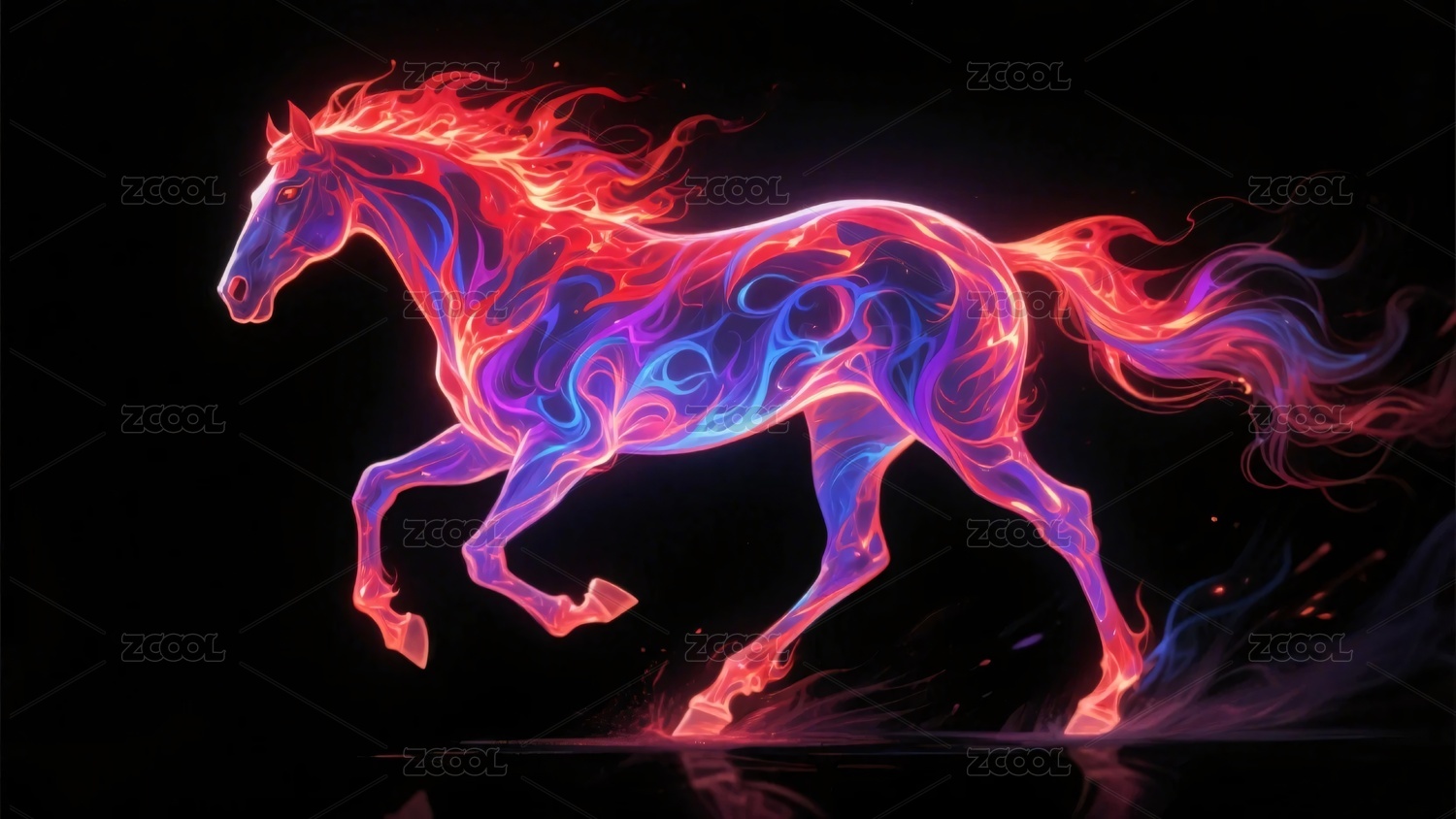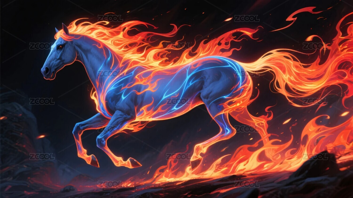 骏马,火焰,奔跑,插画,奇幻,元素,动态,艺术,绚丽,光影
