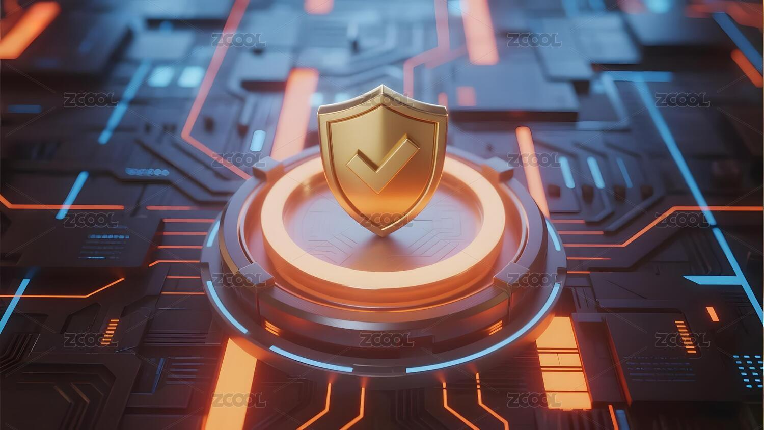 盾牌,金色,选中,数据,图表,科技,抽象,立方体,闪光,圆环