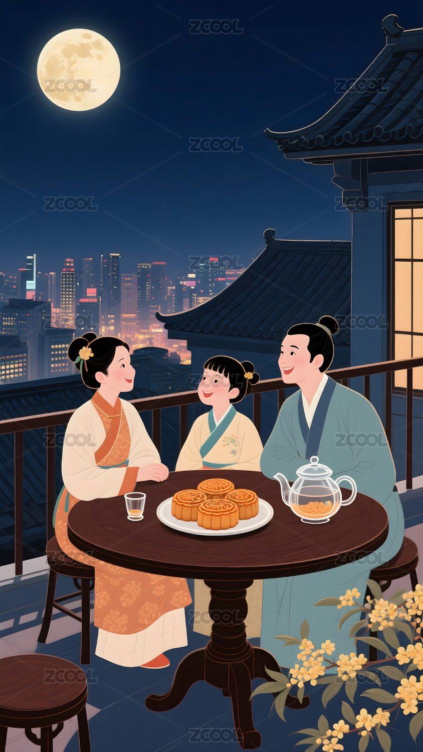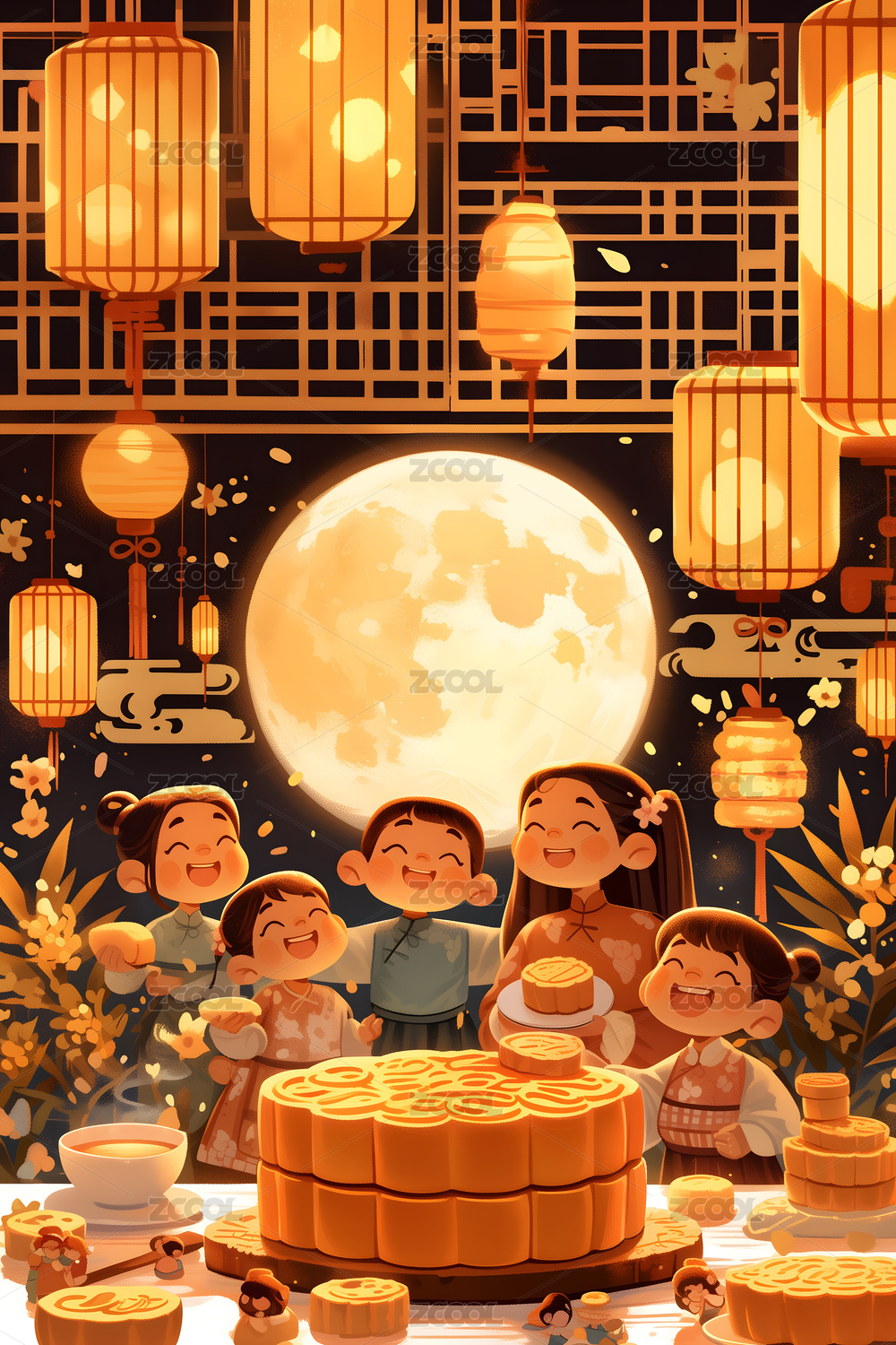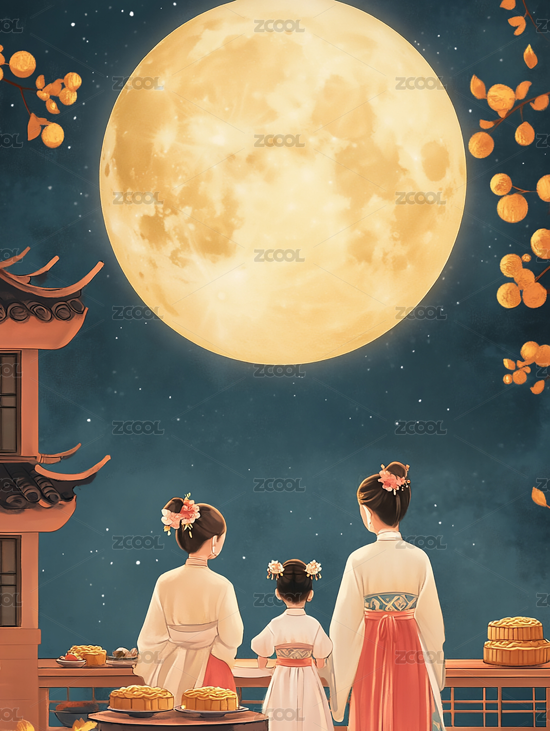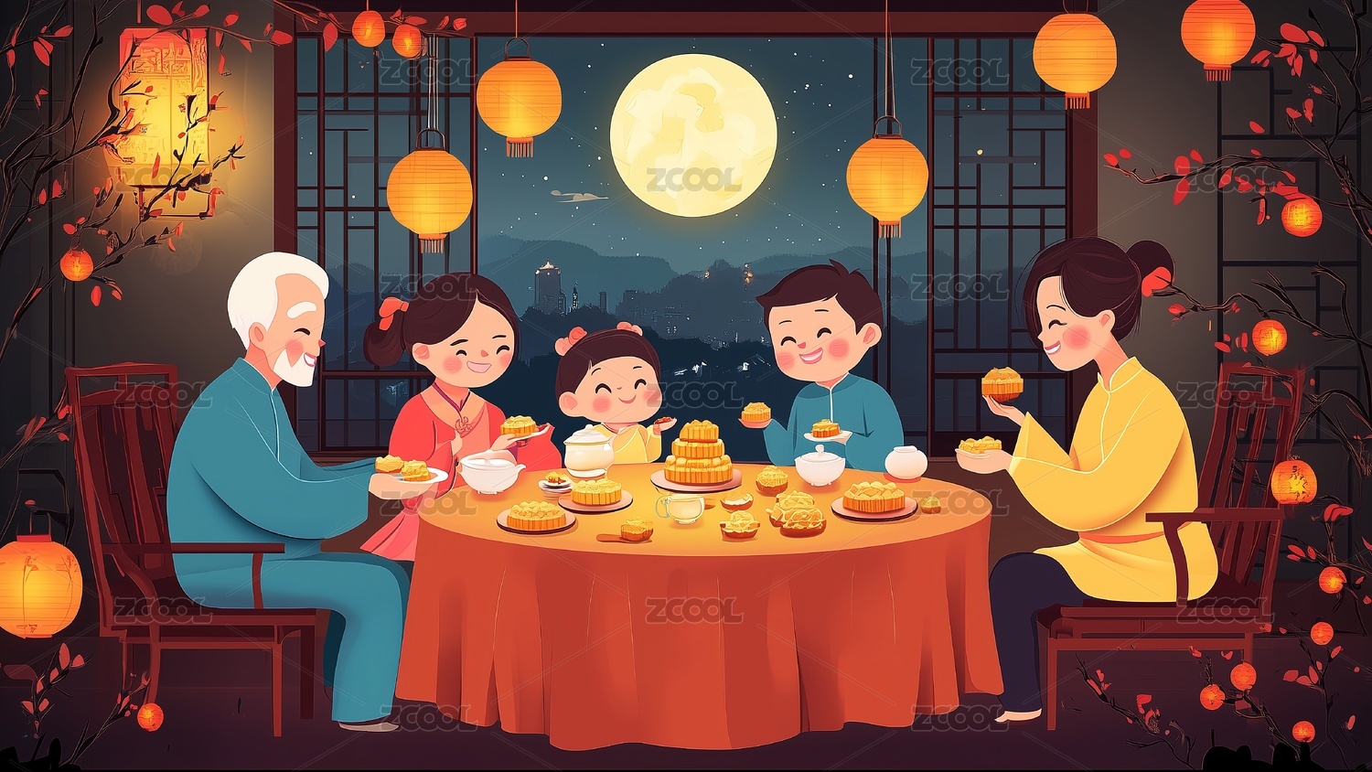 插图,插画,节日,传统,中秋,团圆,神话,可爱,团聚,文化