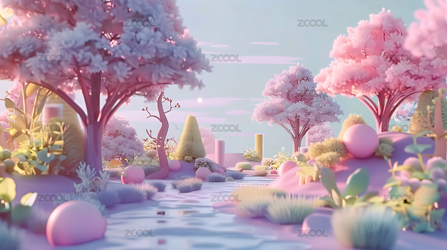 立秋节气户外旅行自然风景处暑卡通唯美插画