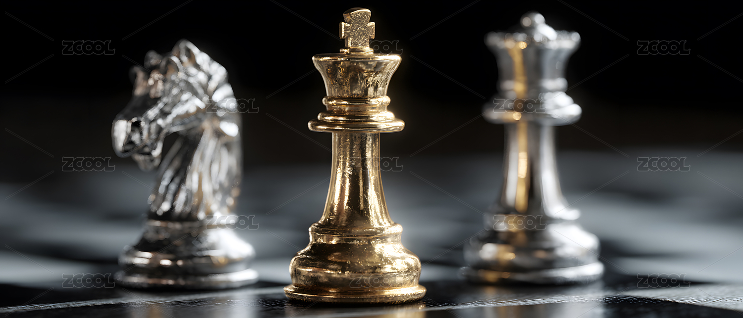 棋子,金色,银色,国王,骑士,棋盘,象征,策略,对弈,质感