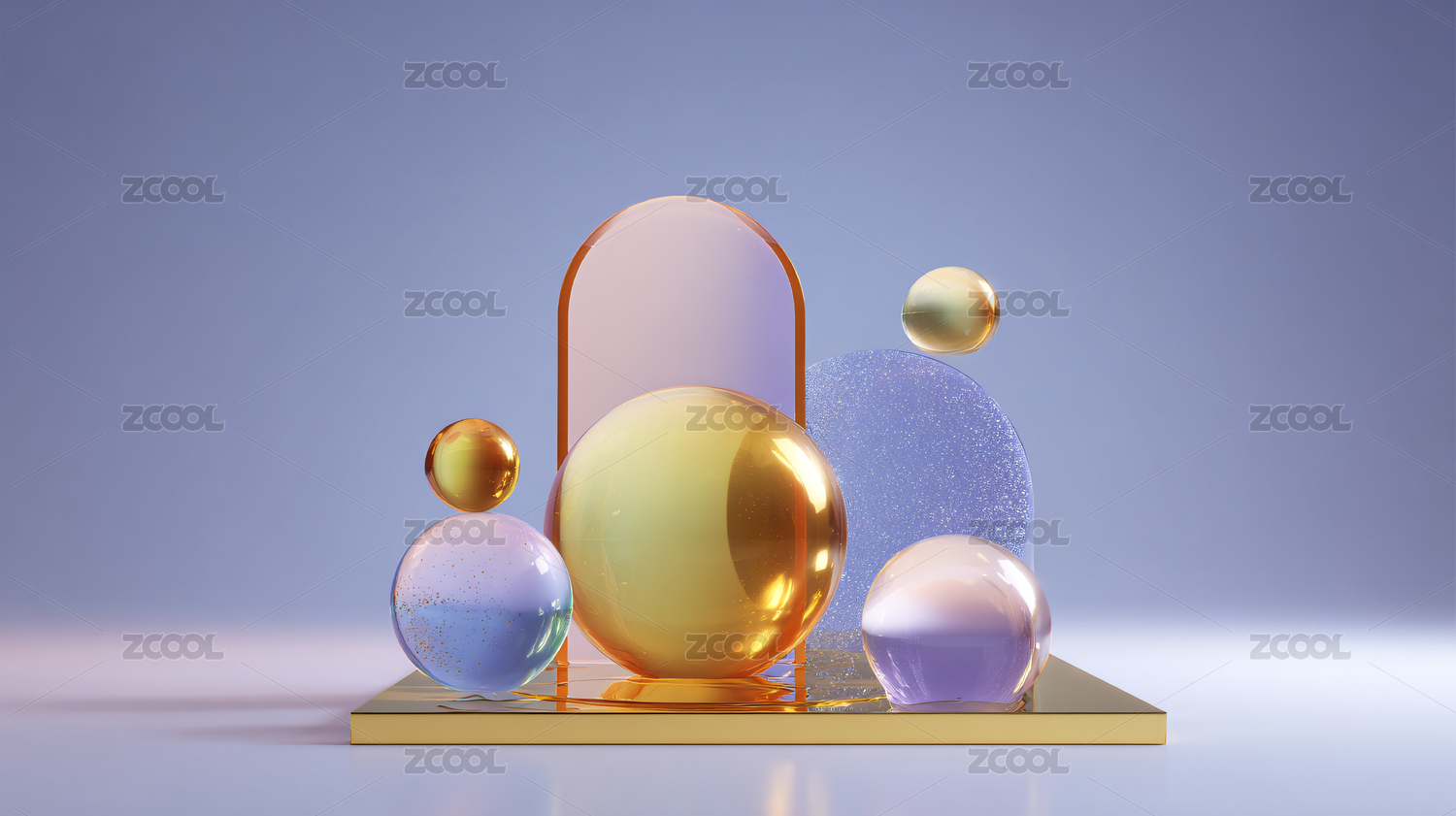 球体,方块,半圆,三角,玻璃,反射,光线,颜色,质感,透明