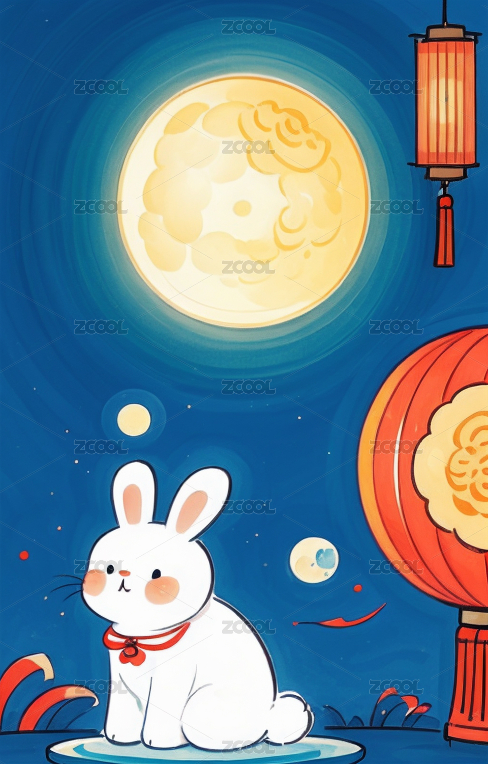 中秋节月亮白兔月饼灯笼插画
