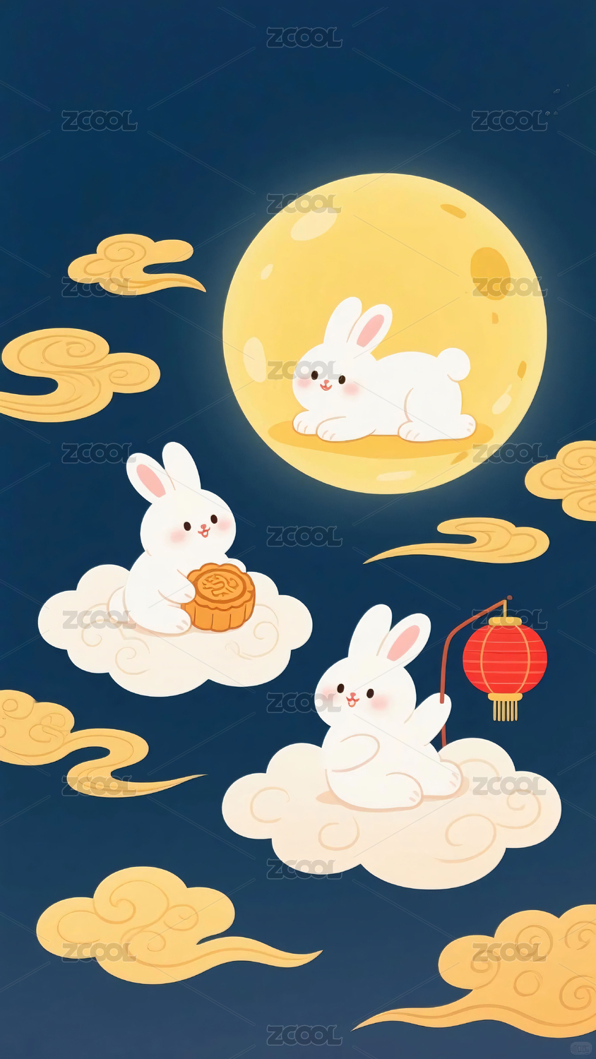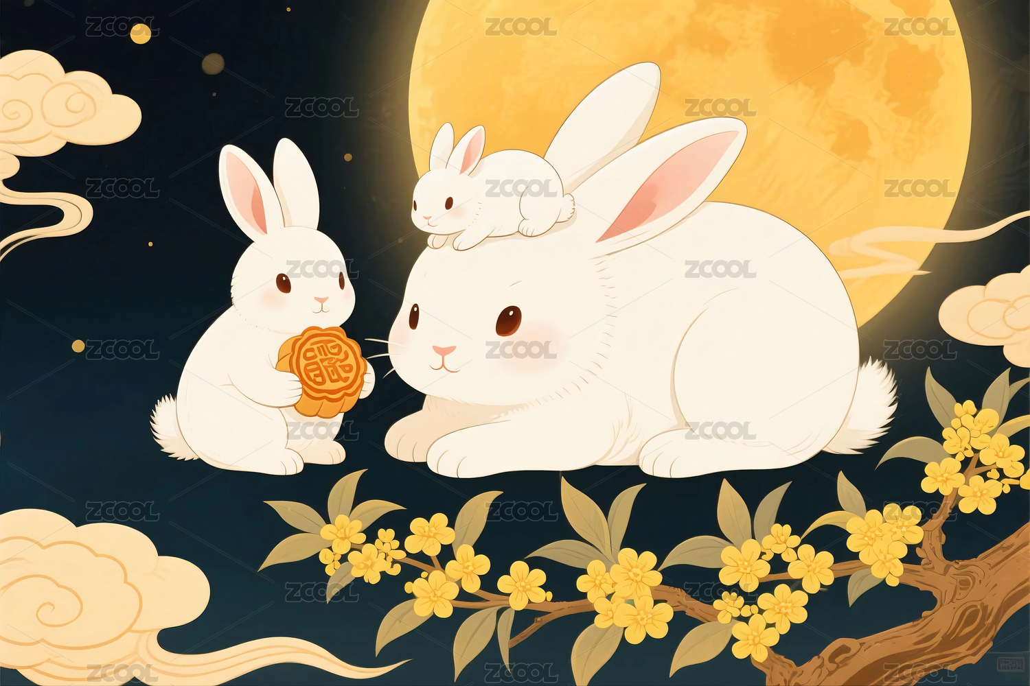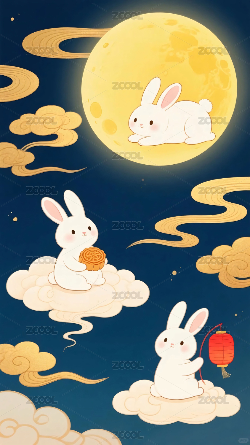 月夜云间双兔伴,浪漫国风意境浓