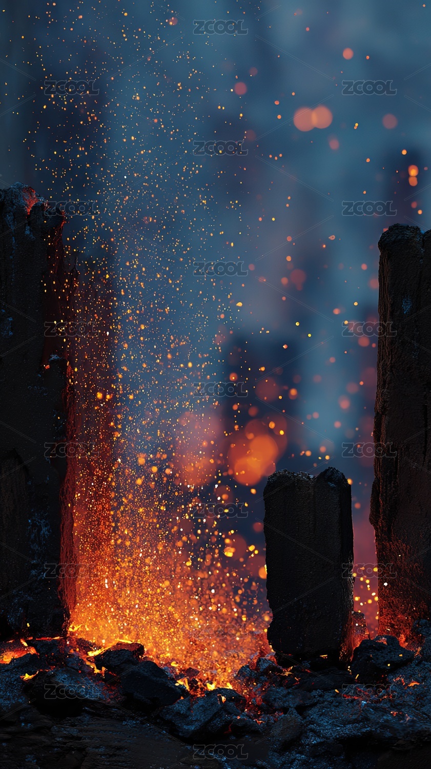 陡崖,熔岩,流淌,火山,自然,景观,险峻,炽热,红色,熔岩流