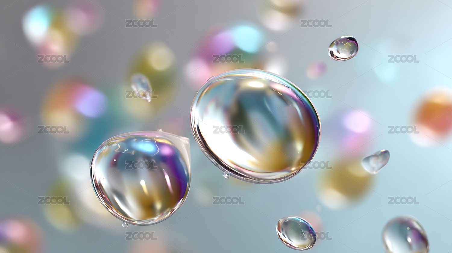 透明气泡悬浮于柔和背景中