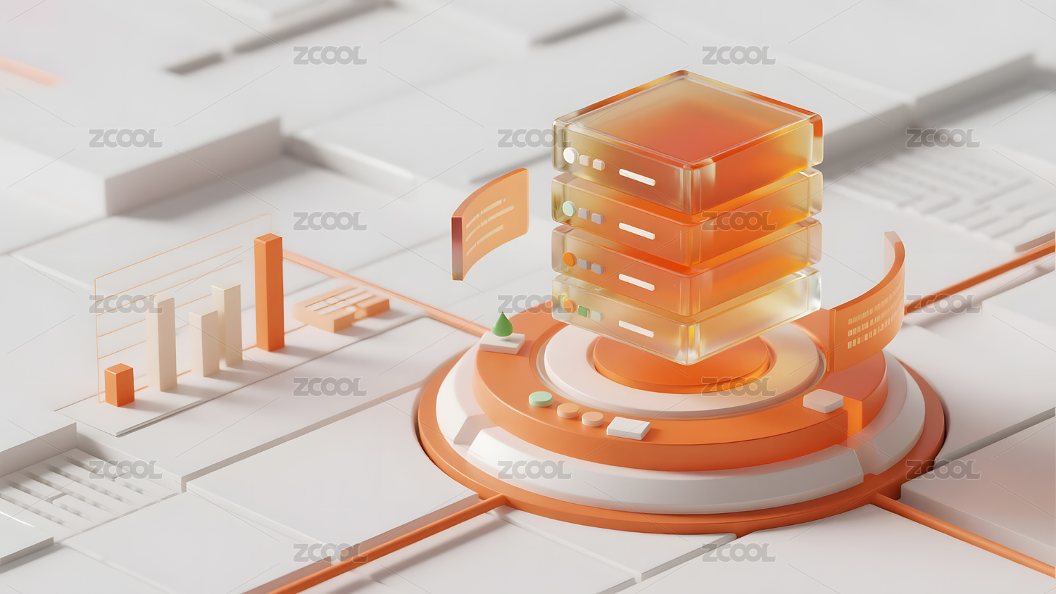 服务器,数据,橙色,白色,科技,立方体,圆环,虚拟,抽象,图标