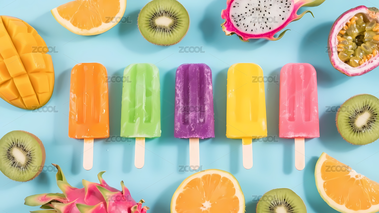 色彩,木棍,棒棒糖,猕猴桃,樱桃,橙子,草莓,水果,切片,透明