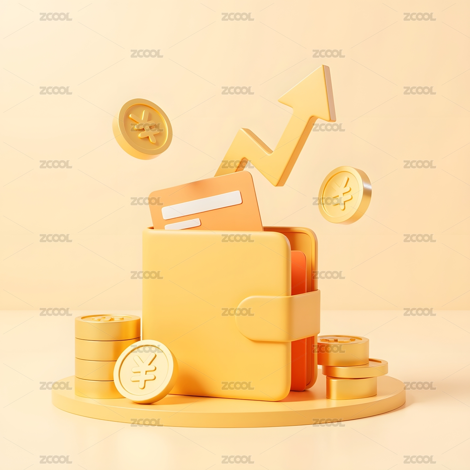 黄色钱包与增长箭头
