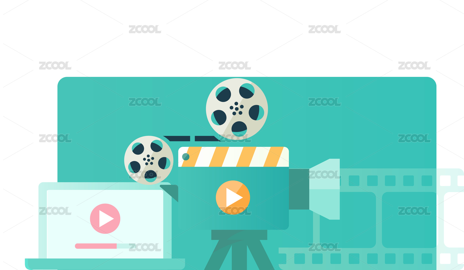 电影拍板与播放按钮设计