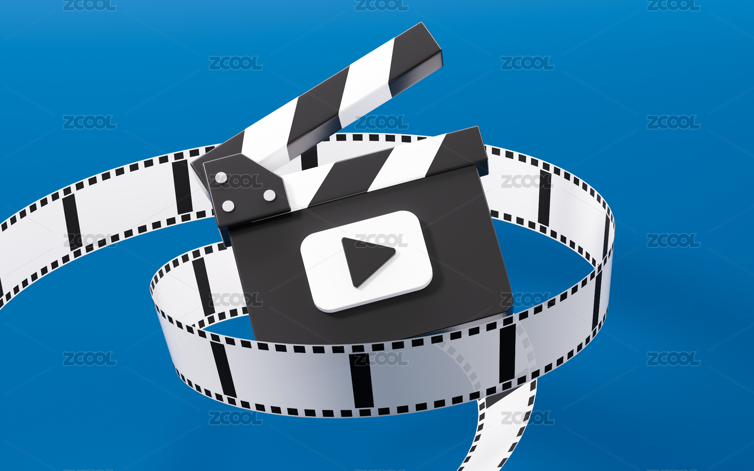 卡通场记板和胶卷电影3D渲染
