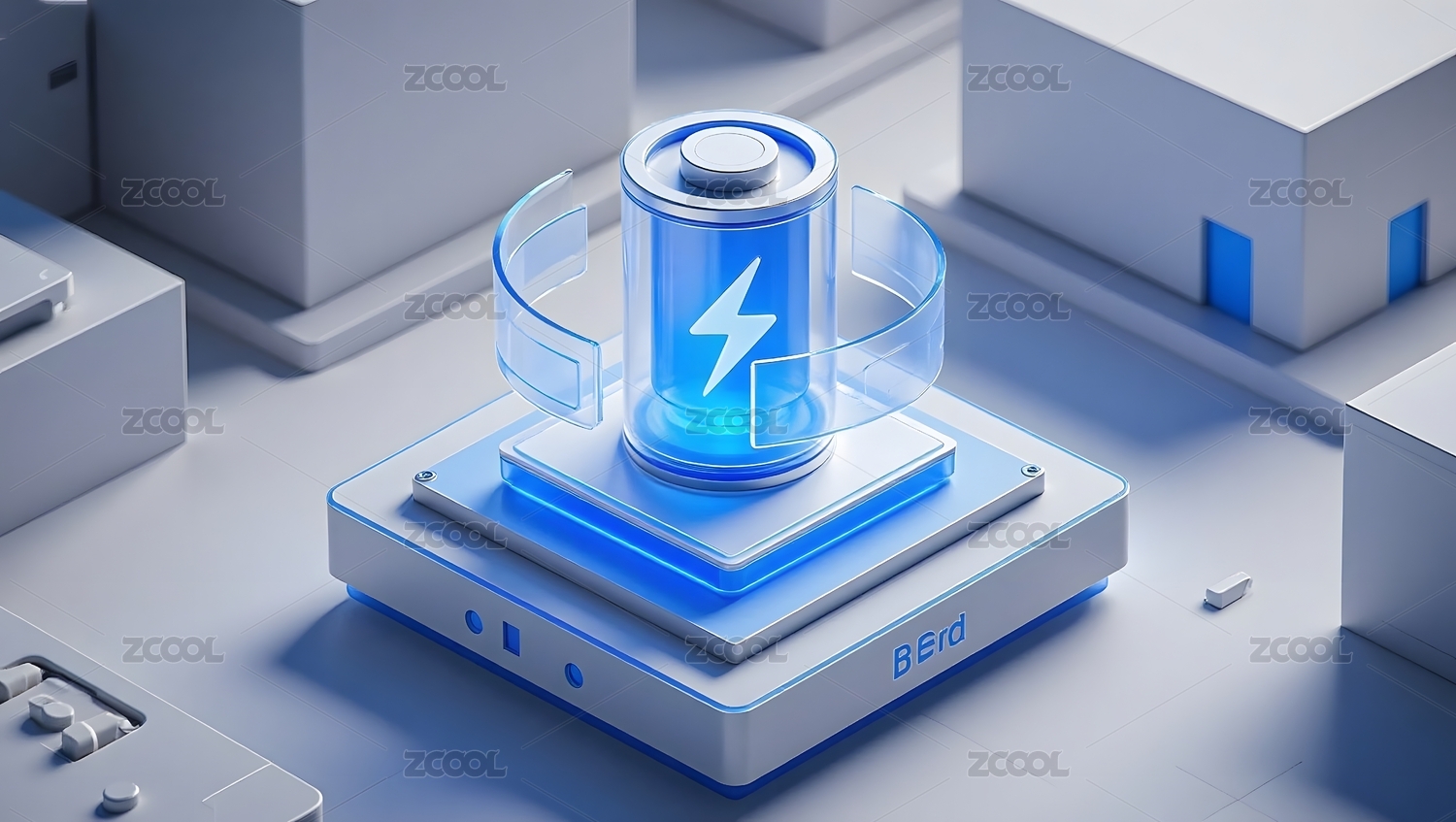 3D蓝色科技电池大场景