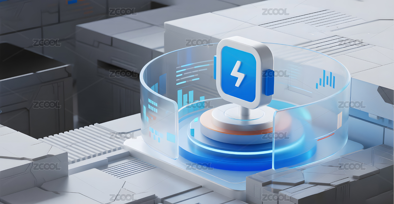 蓝色电池图标科技感设计