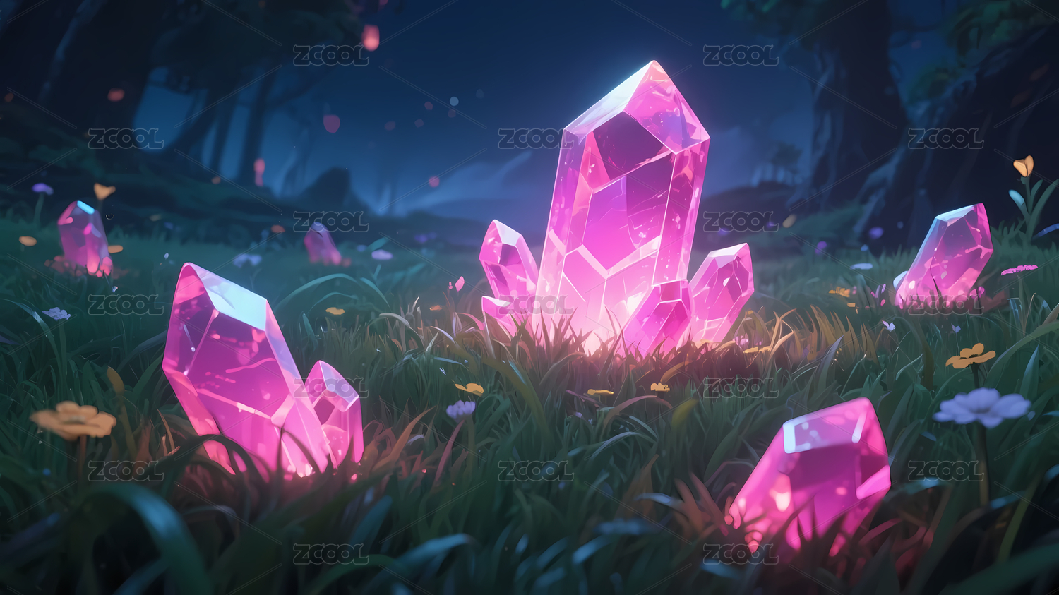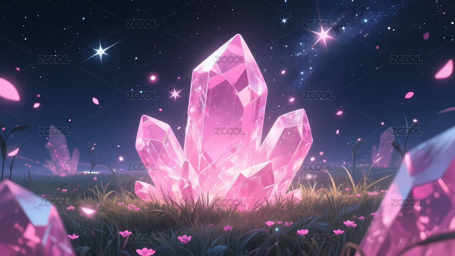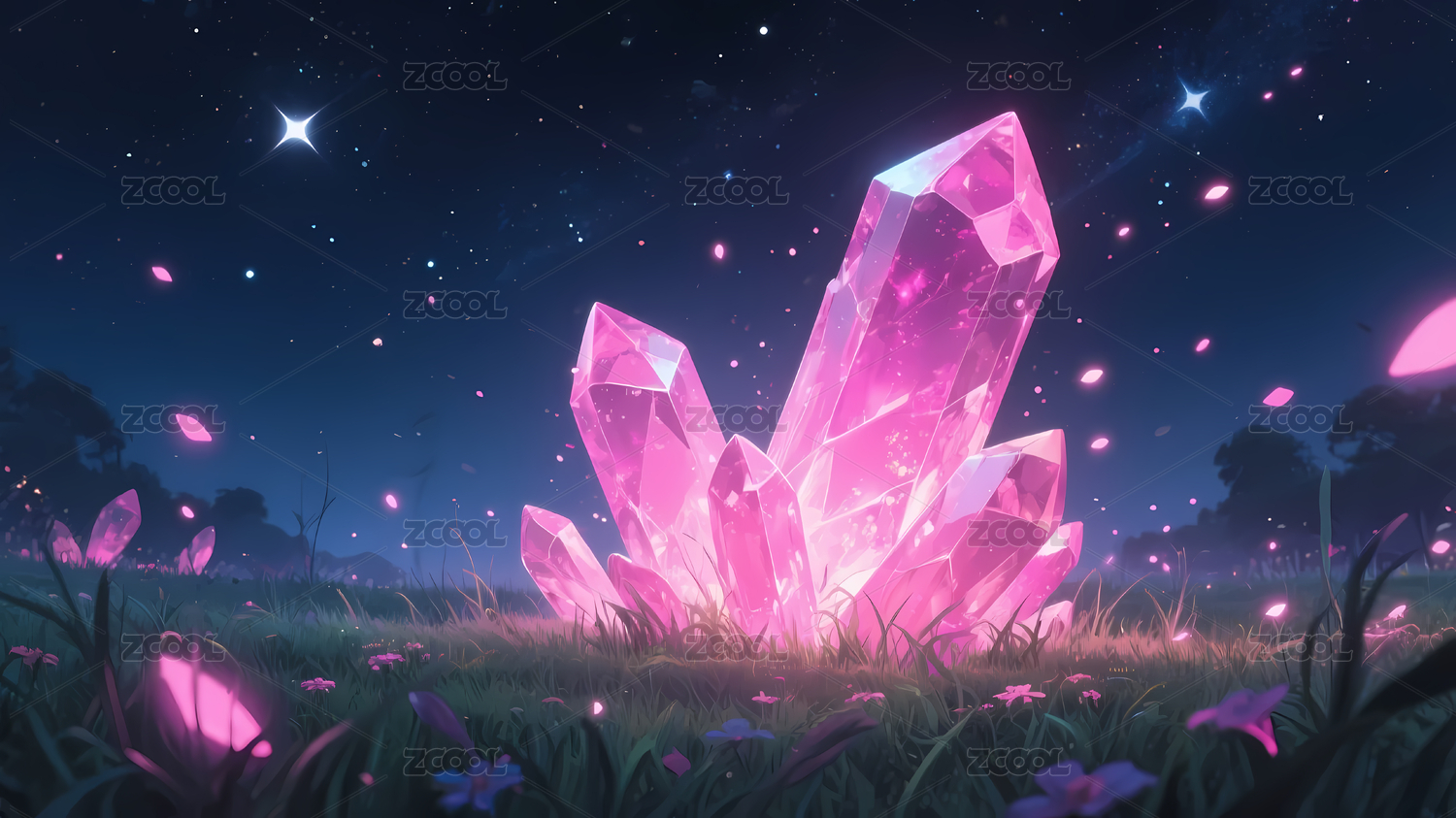 背景,紫色,梦幻,草地,水晶,发光,粉红色,星空,花瓣,飞舞